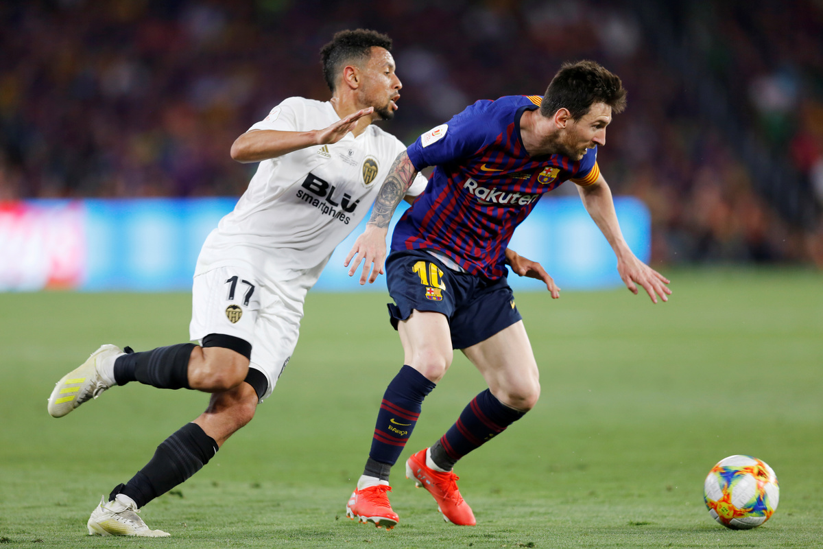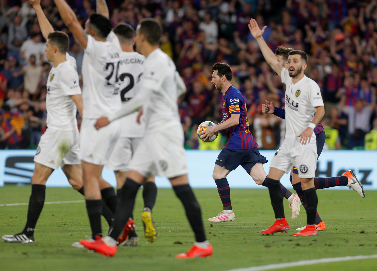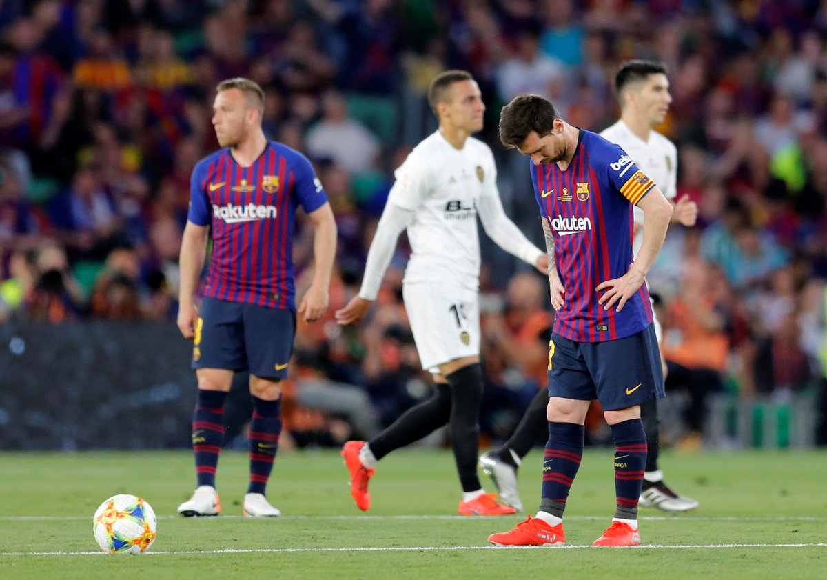 Barcelona were bidding to lift themselves from their humiliation on Merseyside by securing the ninth domestic double in their history, but despite Messi's efforts they were over-run by a determined and well-drilled Valencia side.