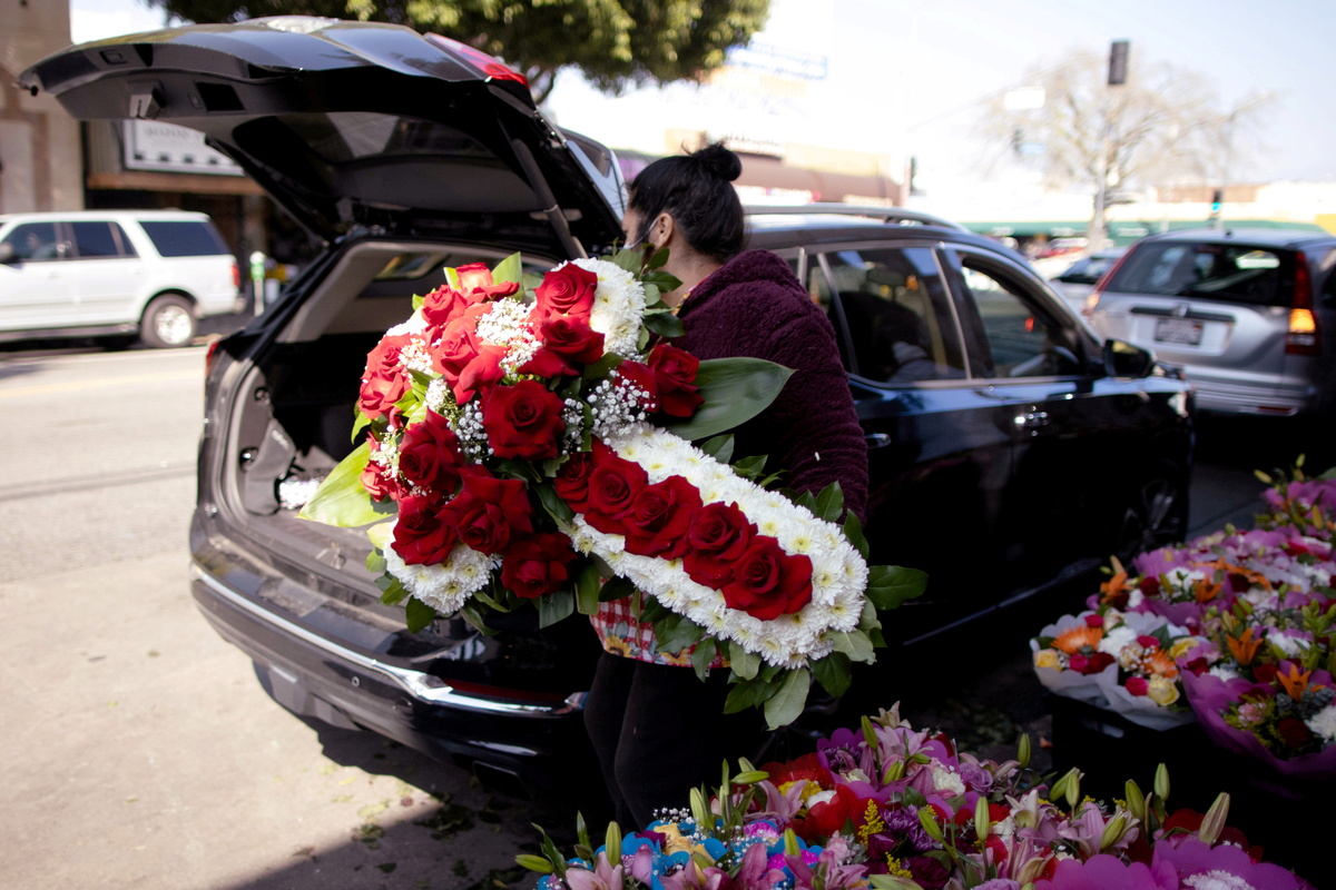 Maria Alvarez, 25, a flower seller in Los Angeles, said her managers at David's Flowers had been forced to turn away families seeking funeral flowers because of the Valentine's Day demand.