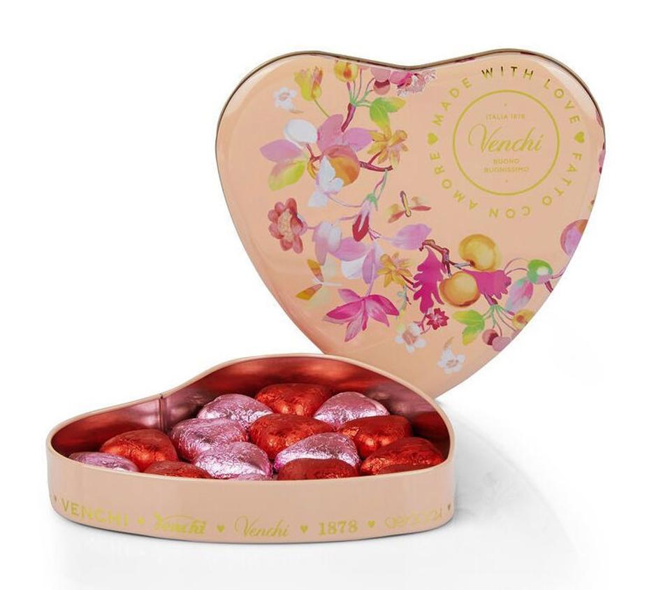 With roots in Turin (Piemonte), one of Italy’s chocolate capitals, Venchi chocolates date back more than 140 years All the company’s delectable chocolates are made with high-quality, natural ingredients; many feature hazelnuts and pistachios from the region that will appeal to anyone with a sweet tooth. Embellished with a beautiful flowery garland design, this Valentine’s Day tin has extra dark and milk chocolates, coupling elegance with romance.