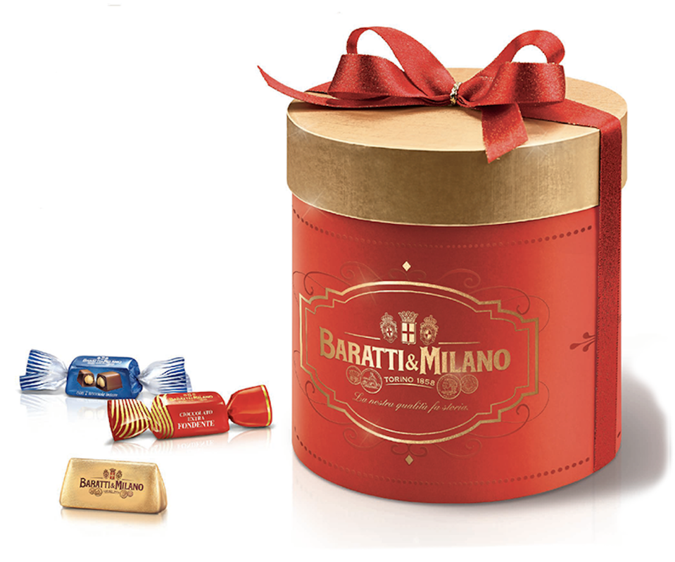 Ferdinando Baratti and Edoardo Milano opened their confectionary in Turin (Piedmonte) in 1858. They garnered such a reputation for the quality of their products that they became the “Chocolate of the Royal Household of Savoy). The regal red and gold Holiday Hatbox is an impressive gift packed with a decadent variety of Baratti & Milano chocolates such as the famous Gianduiotti, the milk chocolate Nocciolatino, a combination of solid milk and dark chocolates, and the dressed to impress Pinguino chocolate.