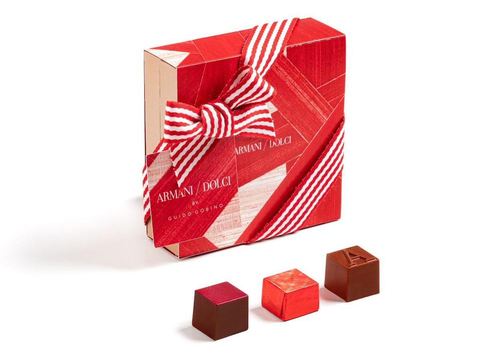 These sustainable “Made in Italy” chocolates have been produced in Turin since 1964 but it wasn’t until 2007 that Guido Gobino opened its first bottega (retail shop) in a historic building in the same city, followed by another retail shop in Milan. The makers use high-quality cocoa beans from Venezuela, Ecuador, Sao Tome, and Mexico; PGI hazelnuts from the Langhe; and milk from the Piedmontese chain. Armani has teamed up with the chocolatier to offer two special Armani/Dolci by Guido Gobino Valentine’s Day gifts that are beautifully wrapped in packaging inspired by the Rigoletto wallpaper by Armani Casa. The cremino has a double layer of caramel and the hand-decorated red pralines, a soft dark center with cocoa nibs.