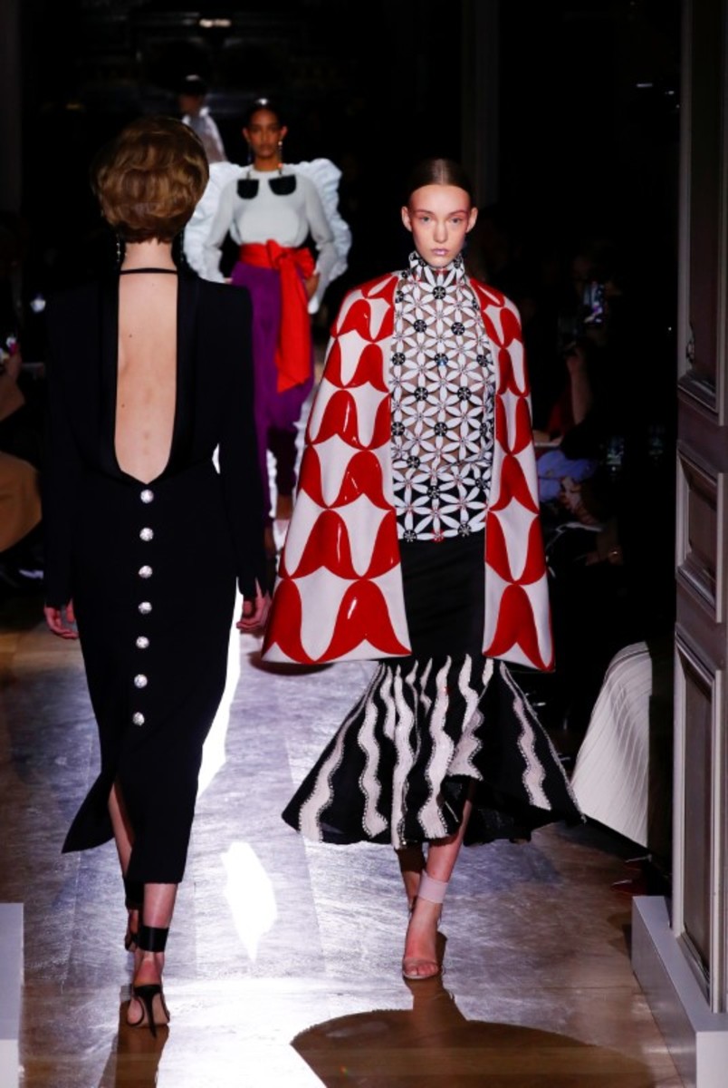 Italian fashion label Valentino subverted classic evening wear for its Paris Haute Couture show on Wednesday, displaying traditional gowns with unexpected twists.