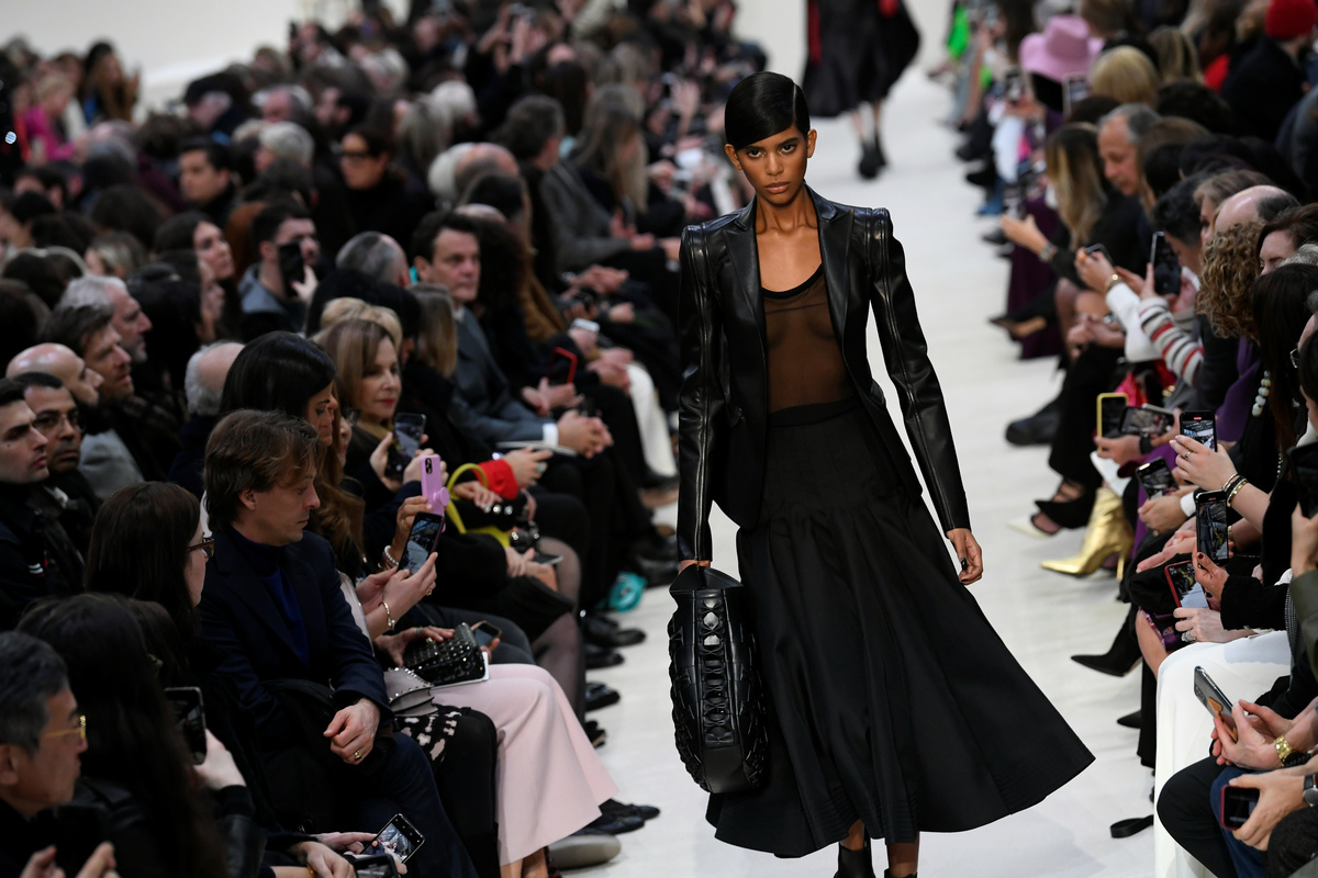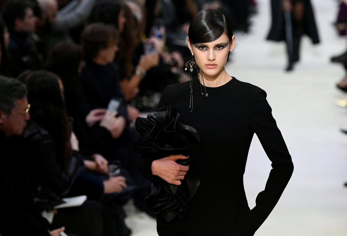 From leather bodices to sheer frilly dresses, Italian label Valentino showcased a series of all-black looks in Paris on Sunday as fashion houses pressed on with their shows in spite of the coronavirus outbreak that has kept some attendees away.