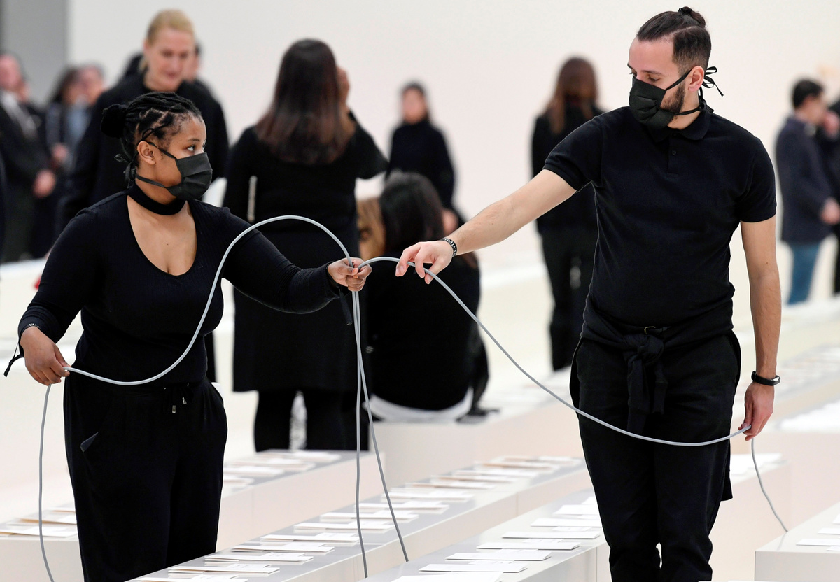 A model presents a creation by designer Pierpaolo Piccioli as part of his Fall/Winter 2020/21 women's ready-to-wear collection show for fashion house Valentino during Paris Fashion Week in Paris, France, March 1, 2020. REUTERS/Piroschka van de WouwA model presents a creation by designer Pierpaolo Piccioli as part of his Fall/Winter 2020/21 women's ready-to-wear collection show for fashion house Valentino during Paris Fashion Week in Paris, France, March 1, 2020. REUTERS/Piroschka van de WouwA model presenta a creation by designer Pierpaolo Piccioli as part of his Fall/Winter 2020/21 women's ready-to-wear collection show for fashion house Valentino during Paris Fashion Week in Paris, France, March 1, 2020. REUTERS/Piroschka van de WouwDesigner Pierpaolo Piccioli blows a kiss at the end of his Fall/Winter 2020/21 women's ready-to-wear collection show for fashion house Valentino during Paris Fashion Week in Paris, France, March 1, 2020. REUTERS/Piroschka van de WouwStaff wear masks ahead of designer Pierpaolo Piccioli's Fall/Winter 2020/21 women's ready-to-wear collection show for fashion house Valentino during Paris Fashion Week in Paris, France, March 1, 2020. REUTERS/Piroschka van de Wouw