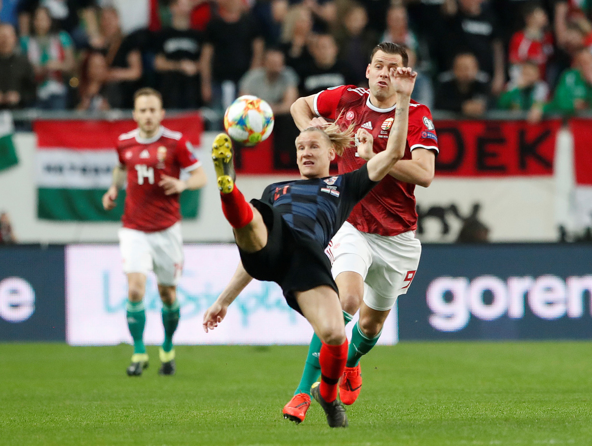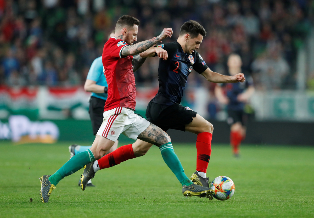 Soccer Football - Euro 2020 Qualifier - Group E - Hungary v Croatia - Groupama Arena, Budapest, Hungary - March 24, 2019 Croatia's Josip Brekalo in action with Hungary's Tamas Kadar REUTERS/Bernadett SzaboSoccer Football - Euro 2020 Qualifier - Group E - Hungary v Croatia - Groupama Arena, Budapest, Hungary - March 24, 2019 Croatia's Ivan Perisic in action with Hungary's Botond Barath REUTERS/Bernadett SzaboSoccer Football - Euro 2020 Qualifier - Group E - Hungary v Croatia - Groupama Arena, Budapest, Hungary - March 24, 2019 Croatia's Ivan Rakitic in action with Hungary's Balazs Dzsudzsak REUTERS/Bernadett SzaboSoccer Football - Euro 2020 Qualifier - Group E - Hungary v Croatia - Groupama Arena, Budapest, Hungary - March 24, 2019 General view of Hungary's Peter Gulacsi in action REUTERS/Bernadett SzaboSoccer Football - Euro 2020 Qualifier - Group E - Hungary v Croatia - Groupama Arena, Budapest, Hungary - March 24, 2019 Hungary's Adam Szalai in action with Croatia's Domagoj Vida REUTERS/Bernadett SzaboSoccer Football - Euro 2020 Qualifier - Group E - Hungary v Croatia - Groupama Arena, Budapest, Hungary - March 24, 2019 Hungary's Dominik Szoboszlai in action with Croatia's Marcelo Brozovic REUTERS/Bernadett Szabo