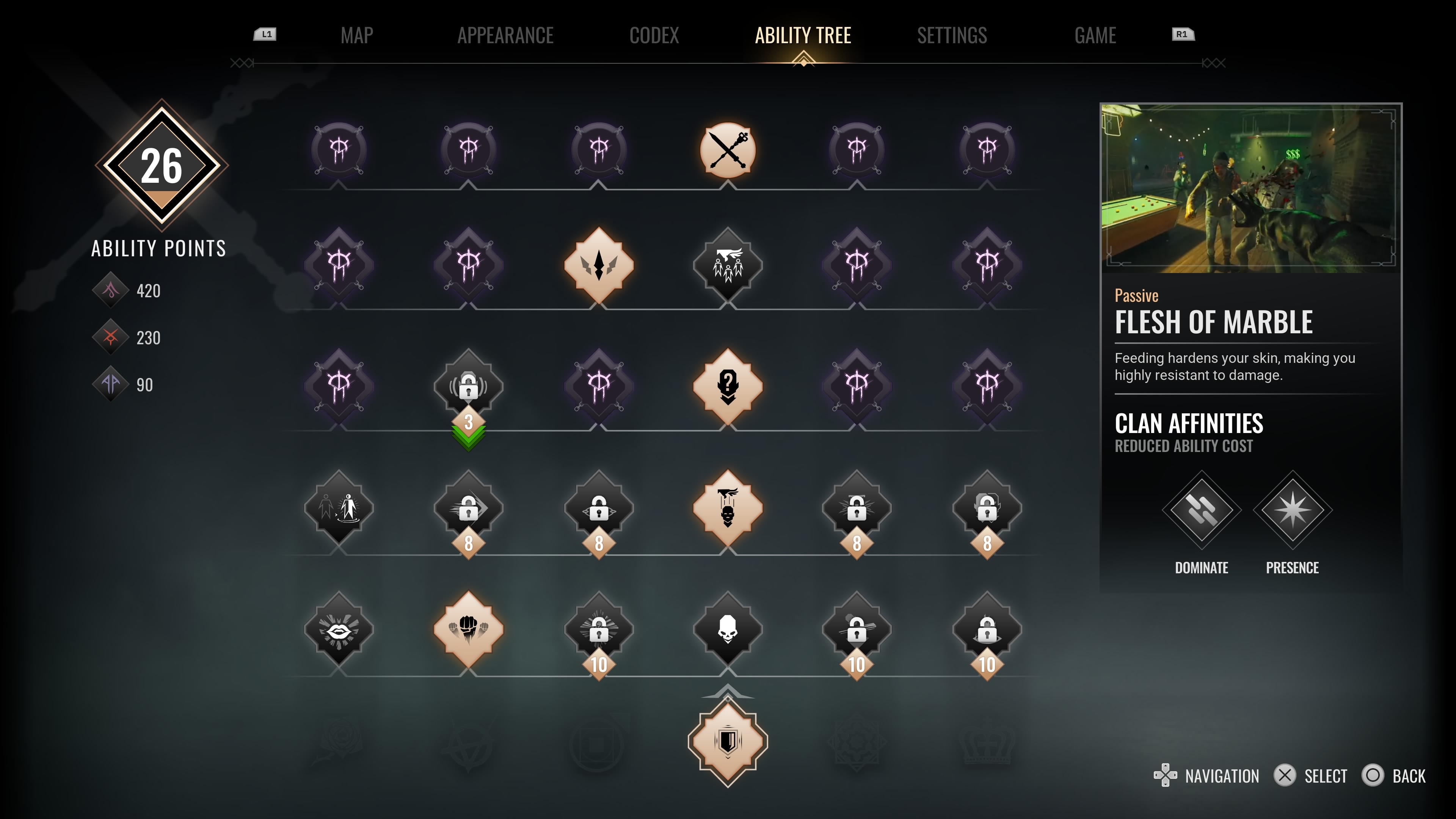 But, unless you actually want to sample the other clans' combat, you never need to purchase these new skills at all, let alone feed from the people of Seattle for Blood Resonance. I finished the game with 38 unused skill points, which feels like a huge waste of time and the mechanic itself. Considering my default clan skills synergized well enough, there's little need to experiment, as you can only equip four at a time anyway with no ability to hotswap loadouts.