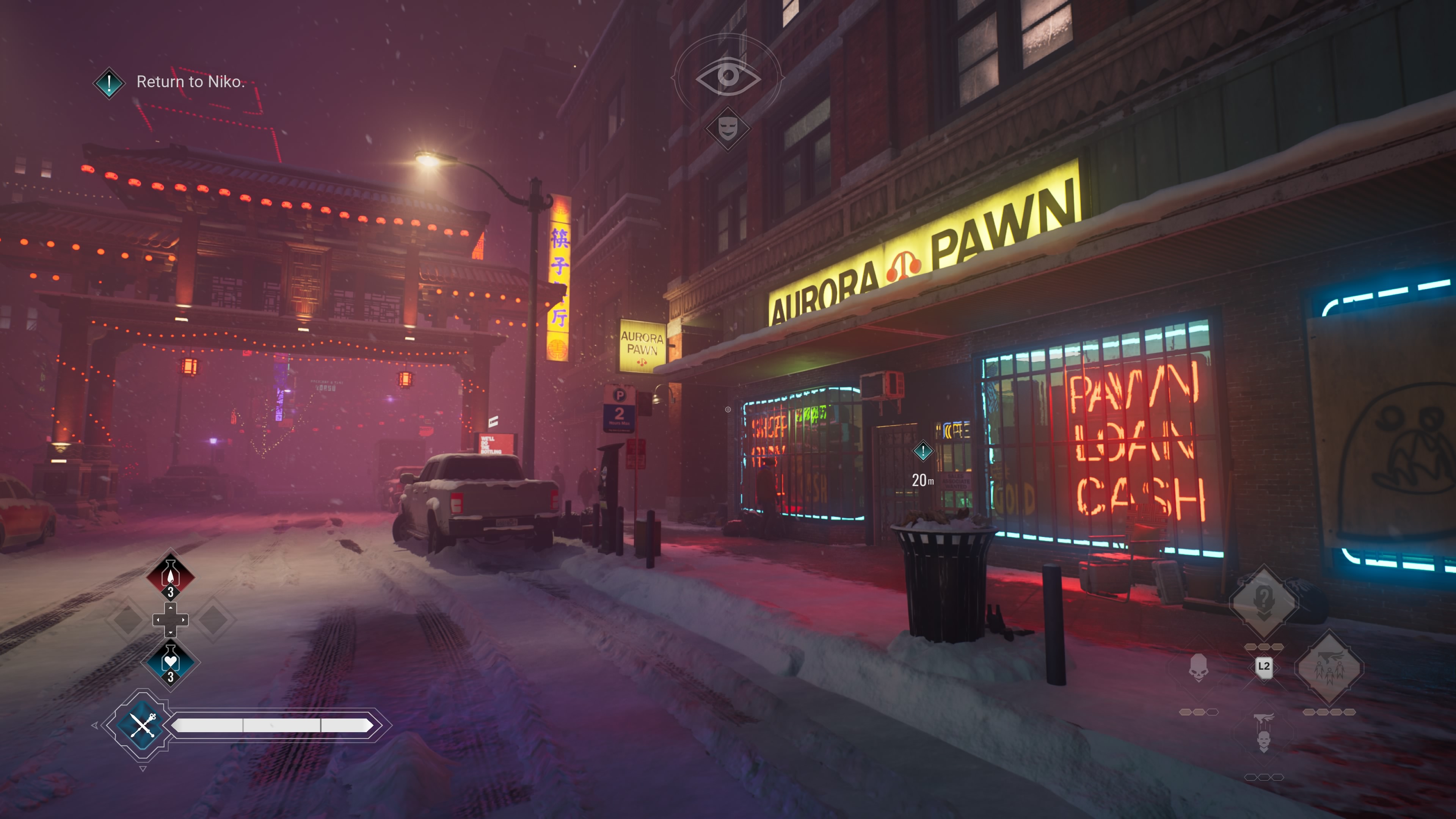 When it comes to the setting and style of the game, I'm let down on both accounts. The city of Seattle is a barren shell, built in the direction of the neon and grime of Cyberpunk 2077's Night City, but with none of the menace that makes it feel threatening, exciting, or compulsive to explore.