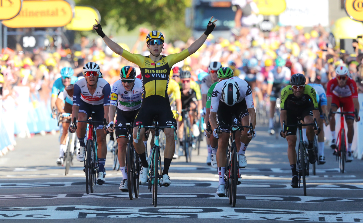 Van Aert was fastest in the sprint at the end of the 183km ride from Gap that was remarkable mainly for featuring no breakaway, an almost unprecedented scenario in normal racing conditions in the modern era.