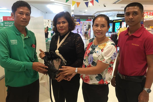 In Nakhon Si Thammarat, Sanya Jitjaem, 32, an employee at a Tesco Lotus superstore returned a handbag containing 85,000 baht cash, a diamond-studded ring and other valuables worth about 500,000 baht to businesswoman Somjit Janthong, 61.