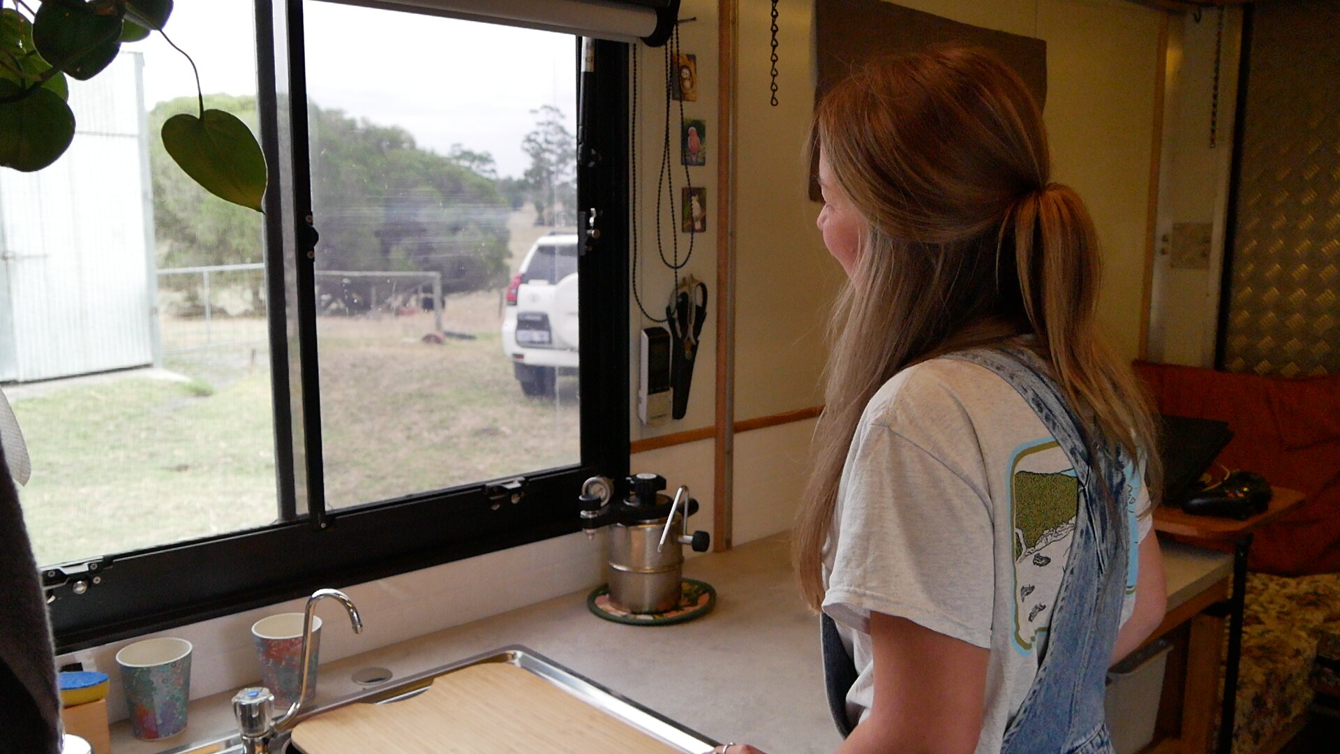 "We were sitting around at a café and there was a pop-up van nearby. I looked at it and thought how much I'd love to live in a tiny house," Kobie said.