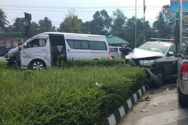 NAKHON SI THAMMARAT: The chief of police in Muang district and three other people were injured when a passenger van ran a red light and smashed into his police truck on Wednesday.