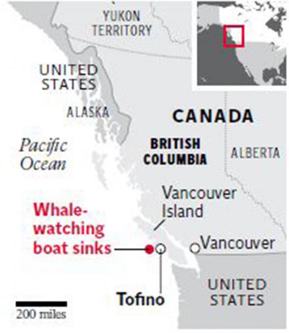 The British victims are believed to have been four men and a woman, aged between 18 and 76, two of whom were British expatriates living in Canada. A further 21 people were rescued from the water by coastguard and civilian boats. Fifteen were treated at Tofino’s local hospital while three who were more seriously injured were transferred to hospitals elsewhere on Vancouver Island, where they were said to be in a stable condition.
