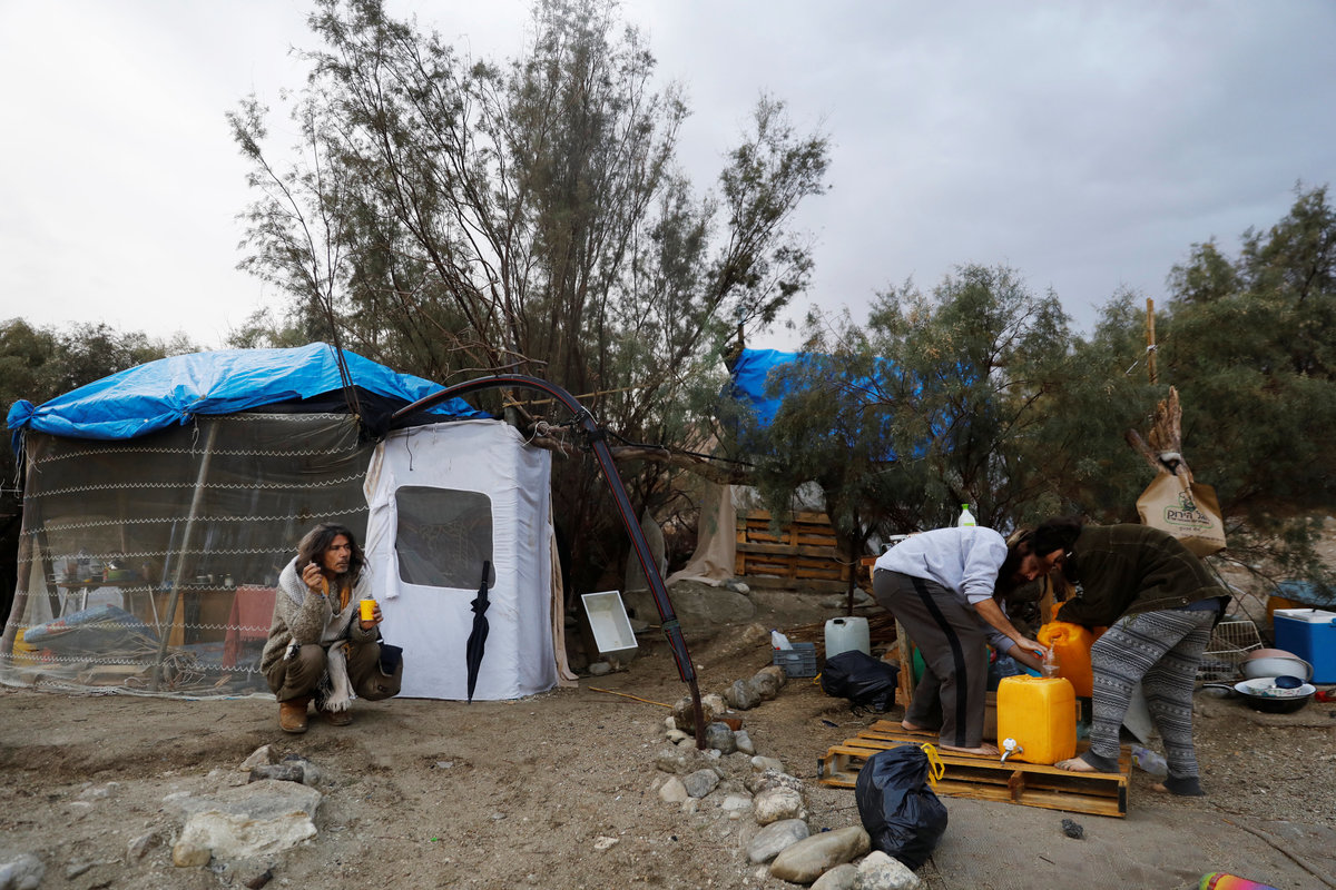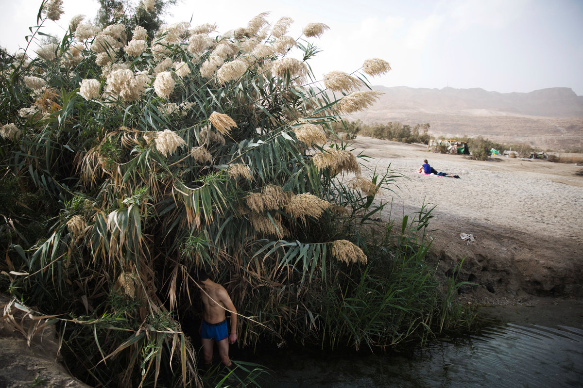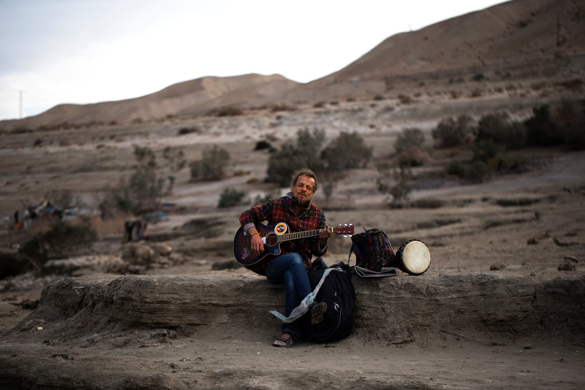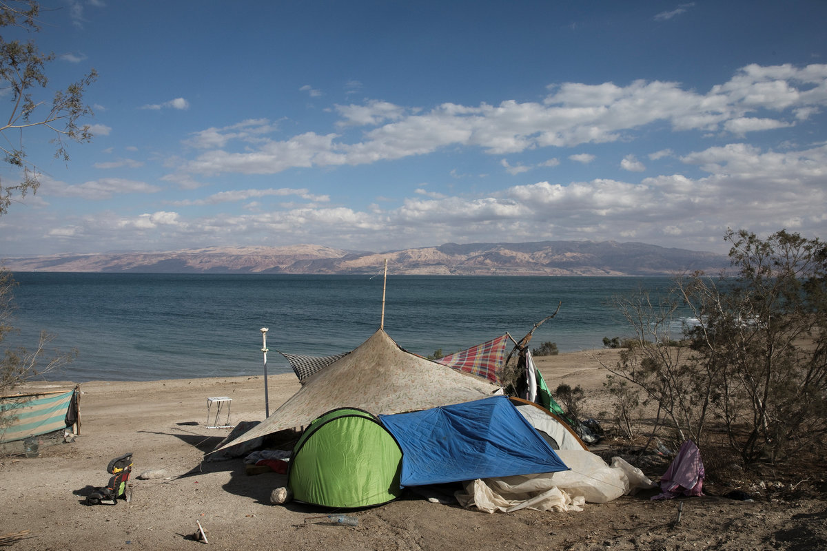 A woman blows the Jewish Shofar, a ram's horn, on the shore of the Dead Sea, near Metzoke Dragot in the Israeli occupied West Bank, January 31, 2018. REUTERS/Ronen ZvulunSharon sleeps in a sleeping bag on the shore of the Dead Sea, near Metzoke Dragot in the Israeli occupied West Bank, February 1, 2018. REUTERS/Ronen ZvulunLevi holds a keffiyeh, an Arab head scarf, as he walks along the shore of the Dead Sea, near Metzoke Dragot in the Israeli occupied West Bank, January 4, 2018. REUTERS/Ronen ZvulunJade reveals her tattooed arm, on the shore of the Dead Sea near Metzoke Dragot in the Israeli occupied West Bank, January 18, 2018. REUTERS/Ronen ZvulunAvraham carries dry branches to his makeshift camp on the shore of the Dead Sea, near Metzoke Dragot in the Israeli occupied West Bank, February 7, 2018. REUTERS/Ronen ZvulunZina, a tourist from Belarus, plays his guitar as he sits on the shore of the Dead Sea, near Metzoke Dragot in the Israeli occupied West Bank, January 25, 2018. REUTERS/Ronen ZvulunA man reads the bible as he sits in his makeshift camp on the shore of the Dead Sea, near Metzoke Dragot in the Israeli occupied West Bank, January 4, 2018. REUTERS/Ronen ZvulunA man sits on the shore of the Dead Sea, near Metzoke Dragot in the Israeli occupied West Bank, February 7, 2018. REUTERS/Ronen ZvulunSharon (L) speaks to a friend on the shore of Dead Sea near Metzoke Dragot in the Israeli occupied West Bank, February 1, 2018. REUTERS/Ronen ZvulunBaruch drags a plastic cover along the shore of the Dead Sea, near Metzoke Dragot in the Israeli occupied West Bank, January 1, 2018. REUTERS/Ronen Zvulun A makeshift camp stands on the shore of the Dead Sea, near Metzoke Dragot in the Israeli occupied West Bank, January 18, 2018. REUTERS/Ronen ZvulunA man walks on the shore of the Dead Sea, near Metzoke Dragot in the Israeli occupied West Bank, February 7, 2018. REUTERS/Ronen ZvulunA man covered with mud from the Dead Sea lies down on the shore of the Dead Sea, near Metzoke Dragot in the Israeli occupied West Bank, January 9, 2018. REUTERS/Ronen ZvulunGad stands in a sweetwater pool among reeds, on the shore of the Dead Sea, near Metzoke Dragot in the Israeli occupied West Bank, January 4, 2018. REUTERS/Ronen ZvulunAvraham walks along the shore of the Dead Sea, near Metzoke Dragot in the Israeli occupied West Bank, February 7, 2018. REUTERS/Ronen ZvulunAvraham (L) sits near his makeshift camp as Bar (R) and a friend pour water into a container, on the shore of the Dead Sea, near Metzoke Dragot in the Israeli occupied West Bank, January 1, 2018. REUTERS/Ronen ZvulunA sink hole filled with water is seen on the shore of the Dead Sea, near Metzoke Dragot in the Israeli occupied West Bank, January 25, 2018. REUTERS/Ronen ZvulunA person swims in the Dead Sea, near Metzoke Dragot in the Israeli occupied West Bank, February 7, 2018. REUTERS/Ronen ZvulunA man bathes in the Dead Sea, near Metzoke Dragot in the Israeli occupied West Bank, January 9, 2018. REUTERS/Ronen Zvulun