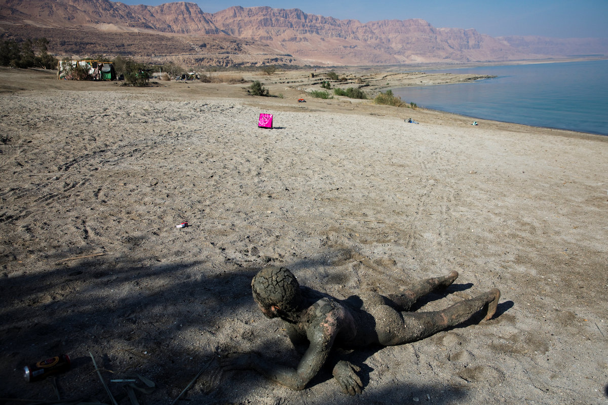 METZOKE DRAGOT BEACH, Dead Sea (Reuters) - A naked man covered in mud lies on a beach, while nearby a dreadlocked recluse reads from the Book of Exodus and a woman strikes a low soothing note from a Tibetan singing bowl.