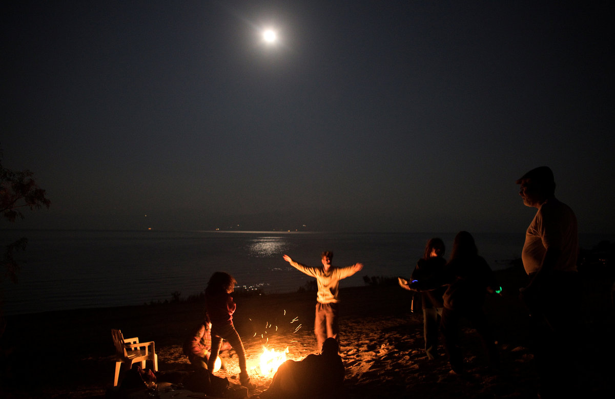 People sit around a bonfire during a full moon, on the shore of the Dead Sea, near Metzoke Dragot in the Israeli occupied West Bank, January 31, 2018. REUTERS/Ronen Zvulun