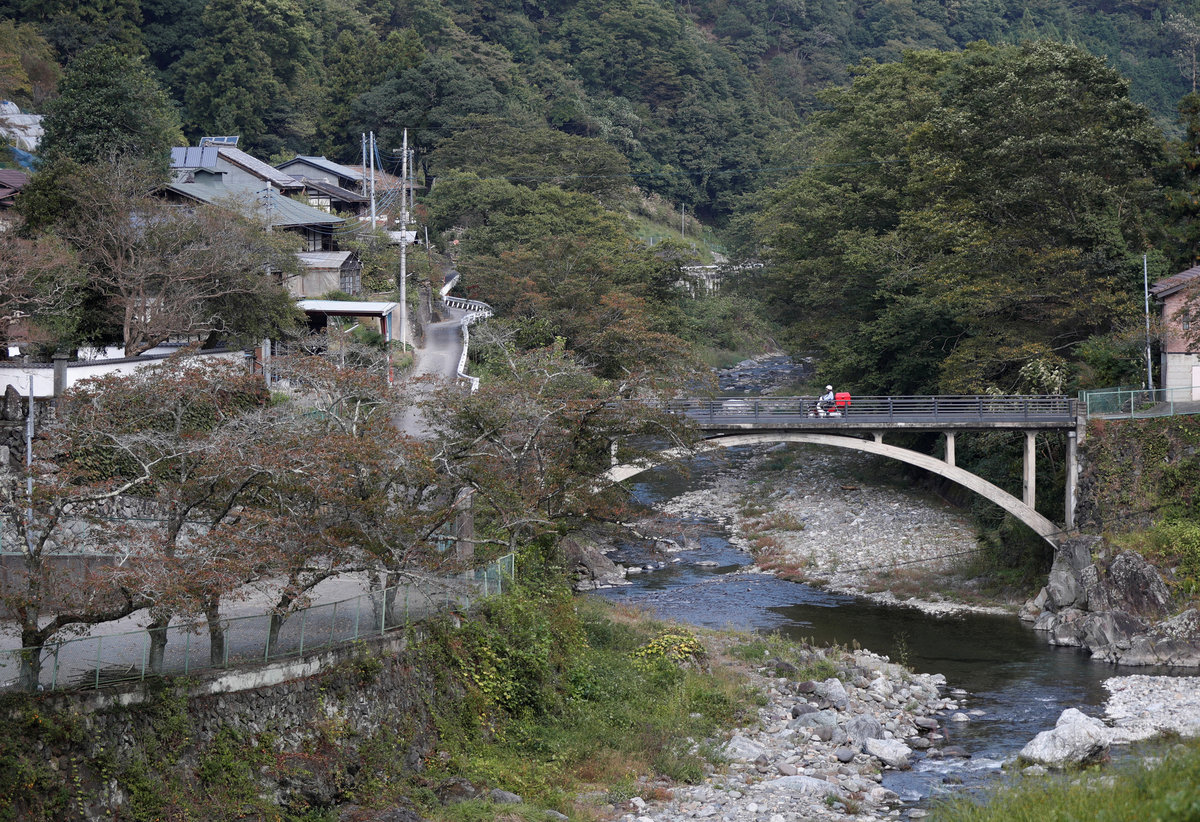 Mountains account for 90 percent of Nanmoku's total land area, leaving little space for farming and housing. Some of the houses, built along a river running through the village, look abandoned. Few customers come by the several general shops that remain open.