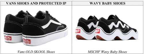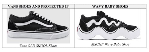 MSCHF, known for its boundary-pushing antics, revealed a sneaker this week that takes on a strong resemblance to the Vans Old Skool skate shoe. The lawsuit outlines the similarities between the two, including the side stripe, rubberized soles, the sidewall’s grooved appearance, a textured toe box, visible stitching, and the placement and proportion of these elements in relation to one another.