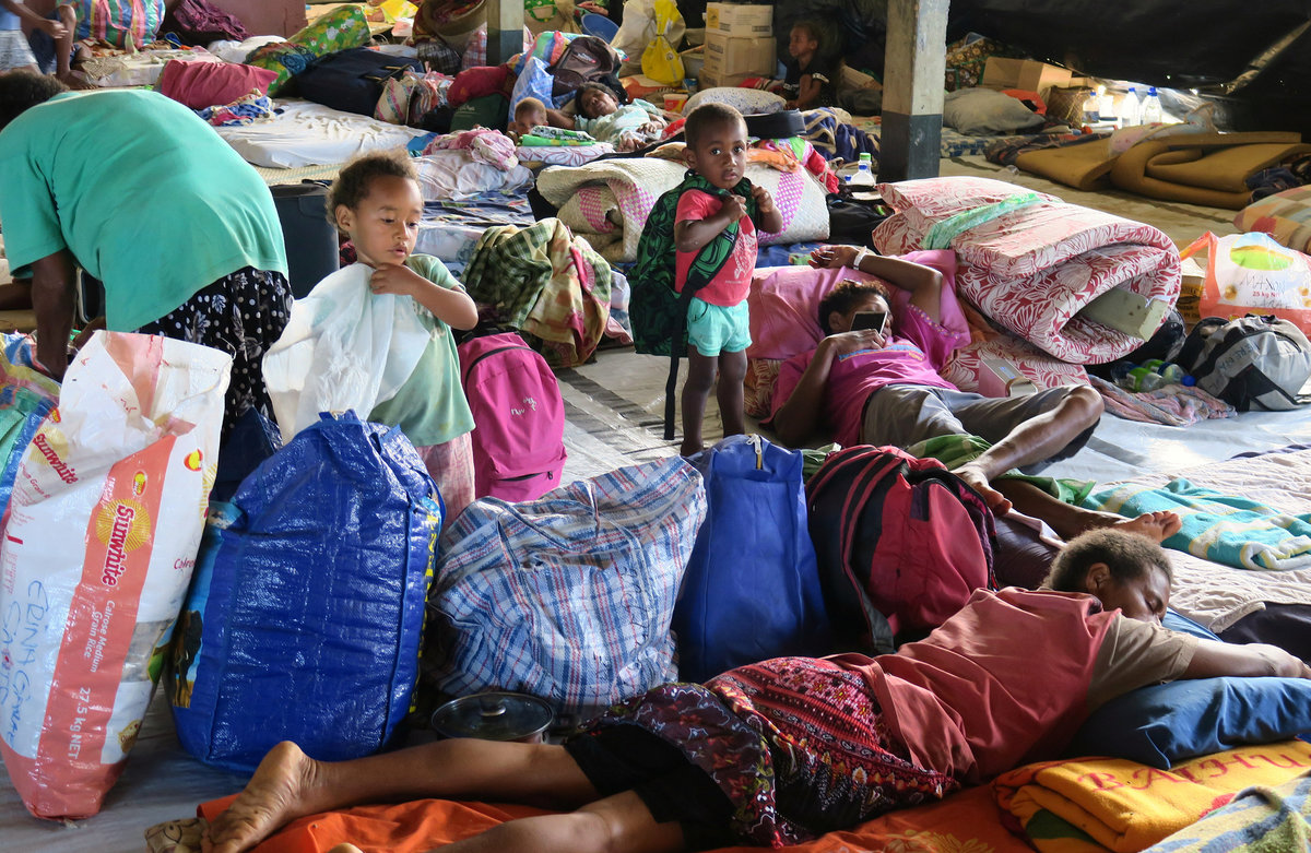 With the evacuation nearly complete, focus has shifted to ensuring those displaced have enough food and water, with shipments from Australia and New Zealand filling an urgent need.