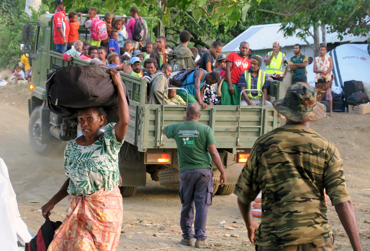 A flotilla of small boats, barges and supply ships have ferried people off Ambae to the closest islands, Maewo, Pentecost and Espiritu Santo over the past few days.