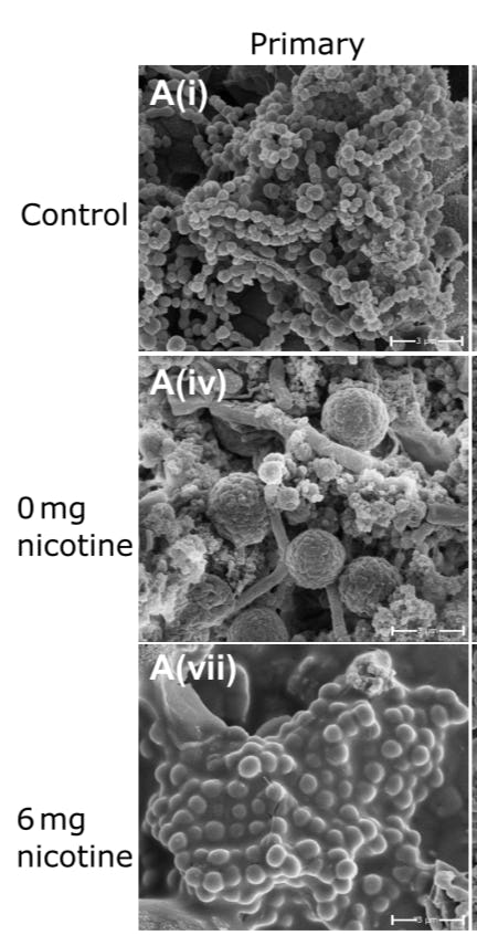 When bacterial communities were exposed to aerosol without nicotine, the team found that the films still tended to spread, which suggested that another ingredient in the aerosol was spurring the action. Propylene glycol and glycerol are sugar alcohols, which may act like nutrient sources for bacteria looking to form biofilms, the team proposes.