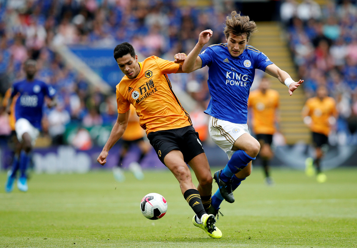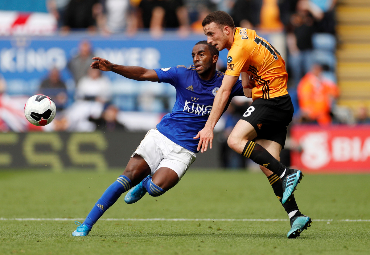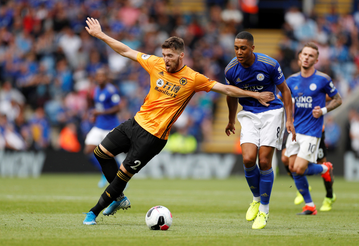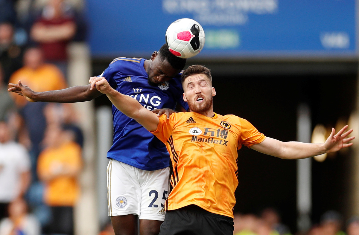 Soccer Football - Premier League - Leicester City v Wolverhampton Wanderers - King Power Stadium, Leicester, Britain - August 11, 2019 Leicester City's Jonny Evans in action as Wolverhampton Wanderers' Willy Boly and Leicester City's Caglar Soyuncu look on Action Images via Reuters/John Sibley Soccer Football - Premier League - Leicester City v Wolverhampton Wanderers - King Power Stadium, Leicester, Britain - August 11, 2019 Leicester City's James Maddison in action with Wolverhampton Wanderers' Jonny and Joao Moutinho REUTERS/Andrew Yates Soccer Football - Premier League - Leicester City v Wolverhampton Wanderers - King Power Stadium, Leicester, Britain - August 11, 2019 Wolverhampton Wanderers' Diogo Jota in action with Leicester City's Wilfred Ndidi as Wolverhampton Wanderers' Leander Dendoncker looks on Action Images via Reuters/John Sibley Soccer Football - Premier League - Leicester City v Wolverhampton Wanderers - King Power Stadium, Leicester, Britain - August 11, 2019 Leicester City's Ricardo Pereira in action with Wolverhampton Wanderers' Diogo Jota Action Images via Reuters/John SibleySoccer Football - Premier League - Leicester City v Wolverhampton Wanderers - King Power Stadium, Leicester, Britain - August 11, 2019 Wolverhampton Wanderers' Romain Saiss in action with Leicester City's Youri Tielemans Action Images via Reuters/John Sibley Soccer Football - Premier League - Leicester City v Wolverhampton Wanderers - King Power Stadium, Leicester, Britain - August 11, 2019 Wolverhampton Wanderers' Matt Doherty in action with Leicester City's Youri Tielemans Action Images via Reuters/John Sibley Soccer Football - Premier League - Leicester City v Wolverhampton Wanderers - King Power Stadium, Leicester, Britain - August 11, 2019 Wolverhampton Wanderers' Raul Jimenez in action with Leicester City's Caglar Soyuncu REUTERS/Andrew Yates Soccer Football - Premier League - Leicester City v Wolverhampton Wanderers - King Power Stadium, Leicester, Britain - August 11, 2019 Wolverhampton Wanderers' Matt Doherty in action with Leicester City's Wilfred Ndidi Action Images via Reuters/John Sibley Soccer Football - Premier League - Leicester City v Wolverhampton Wanderers - King Power Stadium, Leicester, Britain - August 11, 2019 Wolverhampton Wanderers' Matt Doherty in action with Leicester City's Youri Tielemans Action Images via Reuters/John Sibley