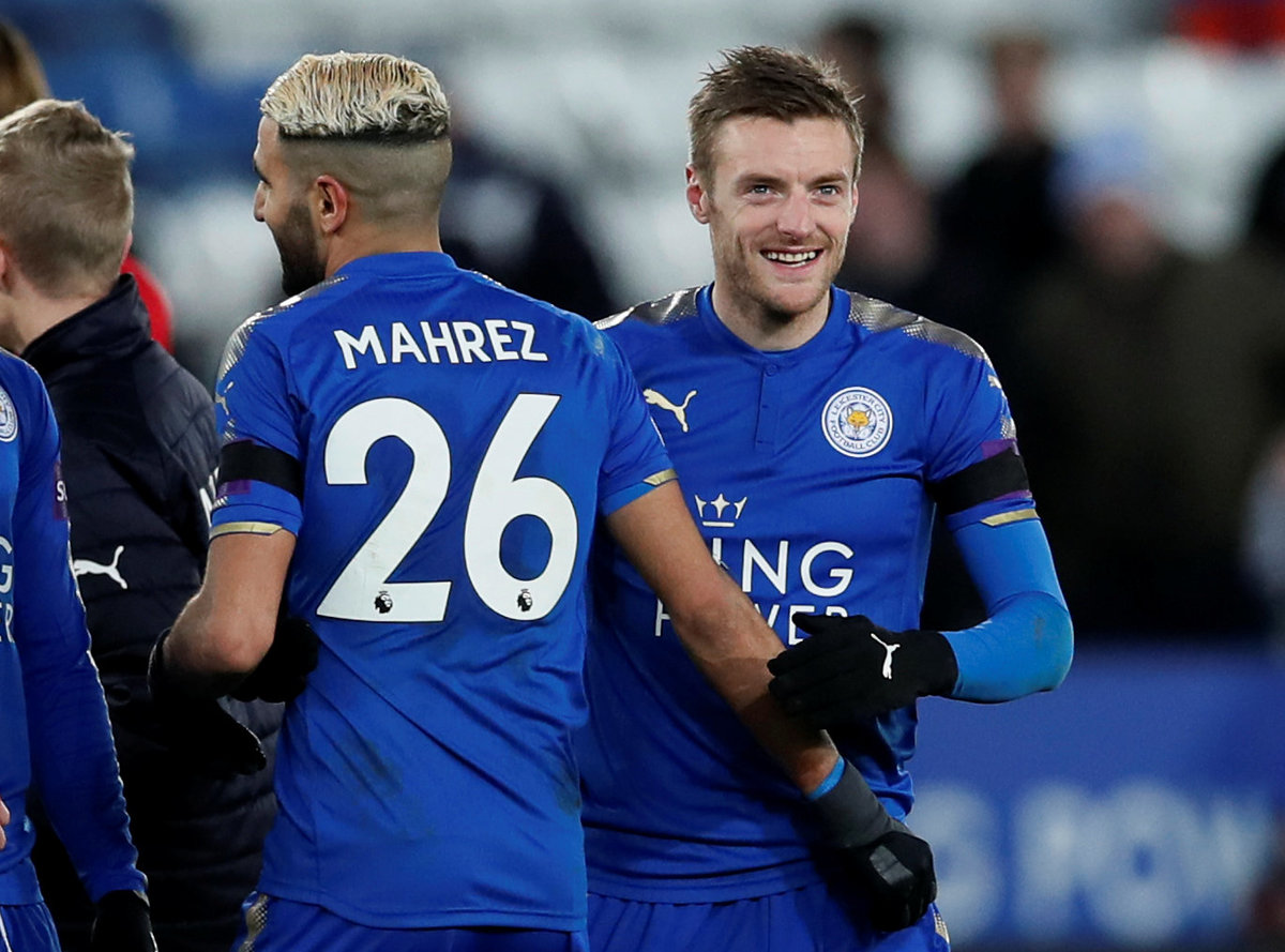 (Reuters) - A well-taken first-half penalty from striker Jamie Vardy and an injury-time goal from midfielder Riyad Mahrez gave Leicester City a 2-0 win over Watford in an entertaining Premier League game on Saturday.