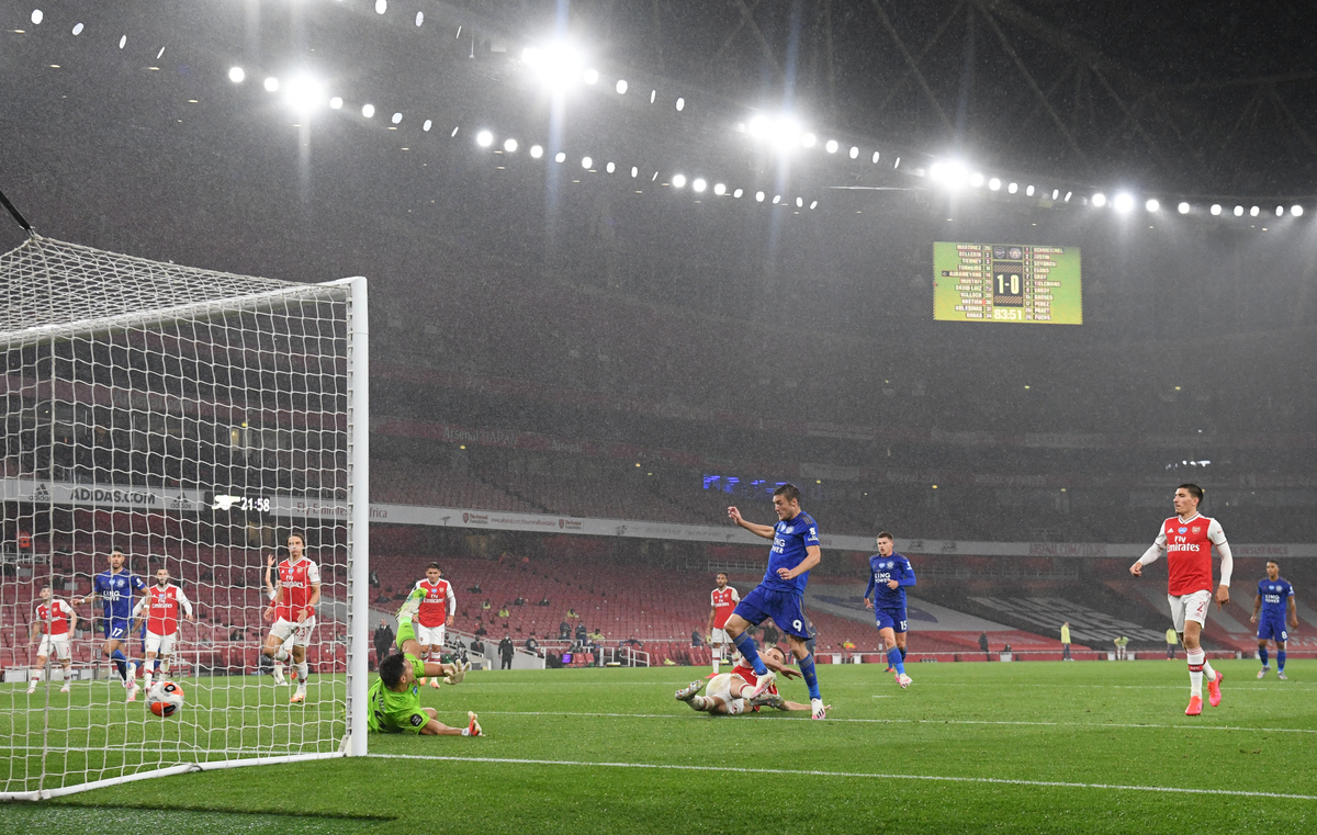 Vardy had an anxious wait as the decision was checked by VAR for a possible offside but the goal stood and the Foxes looked favourites to grab a late winner and claim their first league win at Arsenal since 1973.