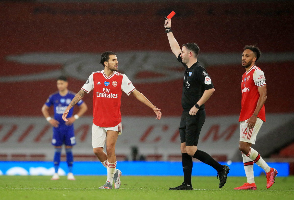 Arsenal had Nketiah sent off in the 75th minute for a reckless tackle on James Justin -- a decision made after referee Chris Kavanagh viewed a pitch-side monitor.