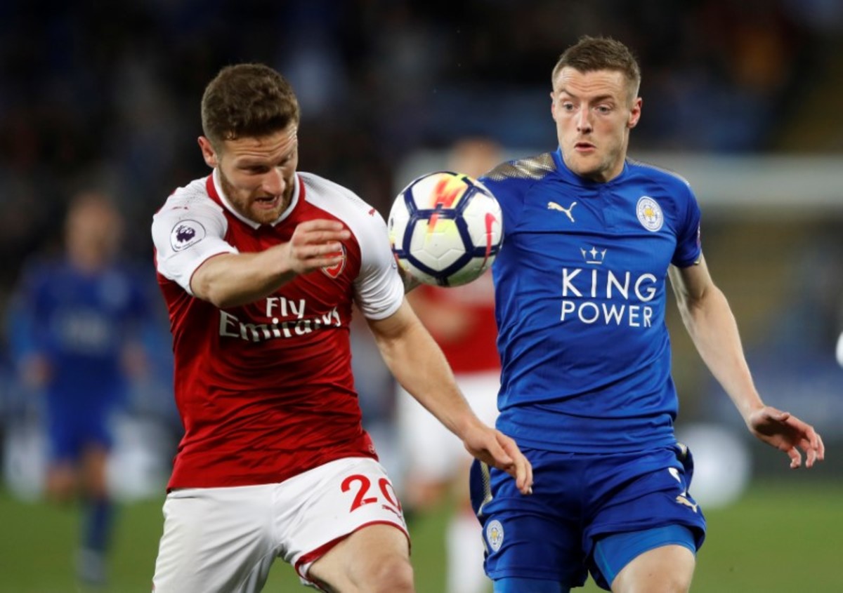 (Reuters) - Leicester striker Jamie Vardy continued his magnificent scoring record against Arsenal on Wednesday as he slammed home a penalty to help his side secure a 3-1 home win over the London club, who were reduced to 10 men in the first half.