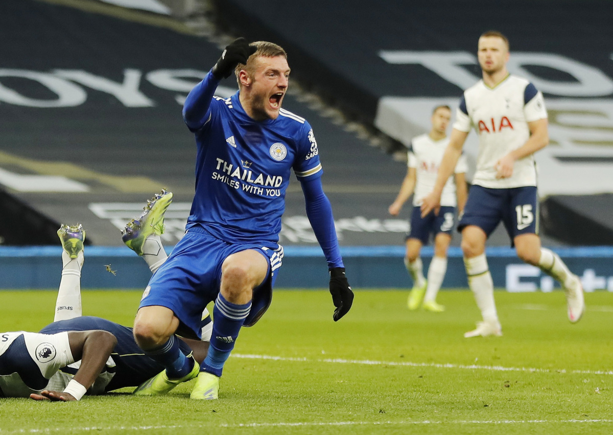 Vardy netted a penalty on the stroke of halftime and his 59th-minute header led to Toby Alderweireld's own goal, lifting Leicester two places up to second on 27 points from 14 games, four behind champions Liverpool.
