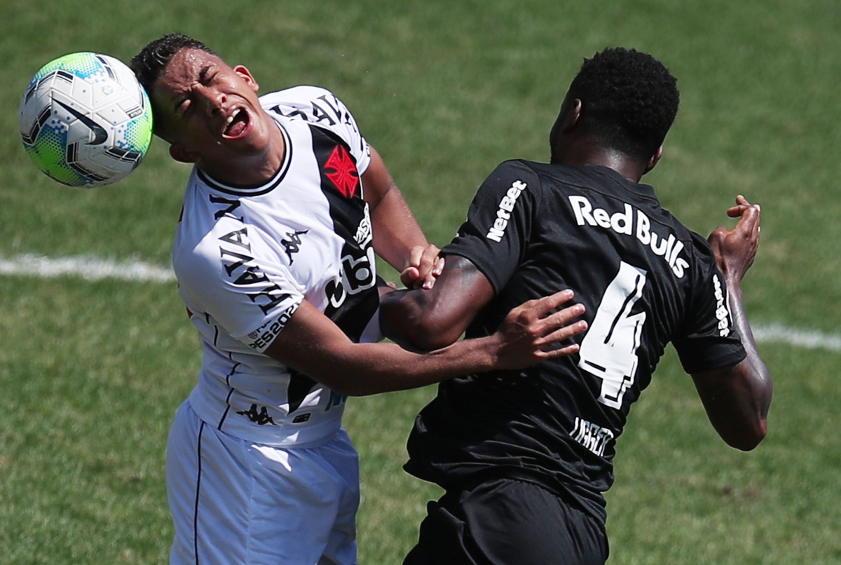 Soccer Football - Brasileiro Championship - Vasco da Gama v Red Bull Bragantino - Sao Januario stadium, Rio de Janeiro, Brazil - September 27, 2020. Vasco da Gama's Vinicius Paiva in action with Red Bull Bragantino's Ligger. REUTERS/Ricardo Moraes