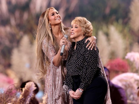 Lopez opened the evening with a moving rendition of “Sweet Caroline”, welcoming her mother Guadalupe Rodríguez onto the stage. Rodríguez sang her own version of the Neil Diamond classic, changing the lyrics to “Sweet Jennifer” – as she used to do when Lopez was a child.