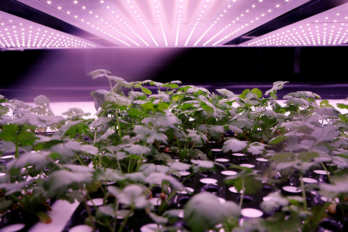 The farming system is intended to use less space than traditional cultivation and will use a purple-hued LED light on the plants to replicate sunlight.