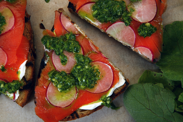 Hardier greens, such as those atop beets, turnips and radishes, can be wilted and added to soup or pasta or folded into tacos. Combining the greens with the vegetables attached to them is happily symmetrical. So, load goat cheese quesadillas with both roasted beets and sauteed beet greens. Thinly sliced radishes make great sandwiches _ with butter and sea salt, or smoked salmon and creme fra�che _ on slabs of thick, rustic bread. Turn the radish tops, which have a peppery tang to them reminiscent of arugula, into a vibrant salsa verde. Drizzle over toast or stir into creme fra�che (or yogurt or cream cheese) to brighten both the flavor and the color.