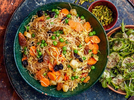 Created by Iraqi chef Dhuha from Eat Offbeat, the New York catering company that employs refugees who have resettled in the city, this Middle Eastern version of the Indian classic is made with cinnamon-scented rice, vermicelli noodles, potatoes and raisins.