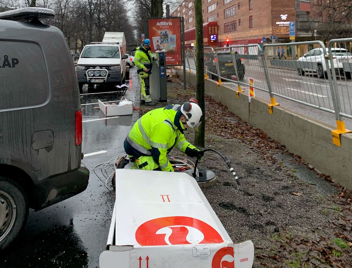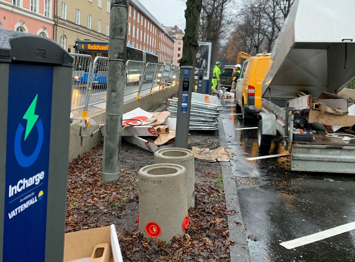 Early this month, a man selling Christmas trees looked on as workers installed 10 public vehicle charging stations with two power outlets each in Valhallavägen, which is around 3.5 kilometers (2.17 miles) long.