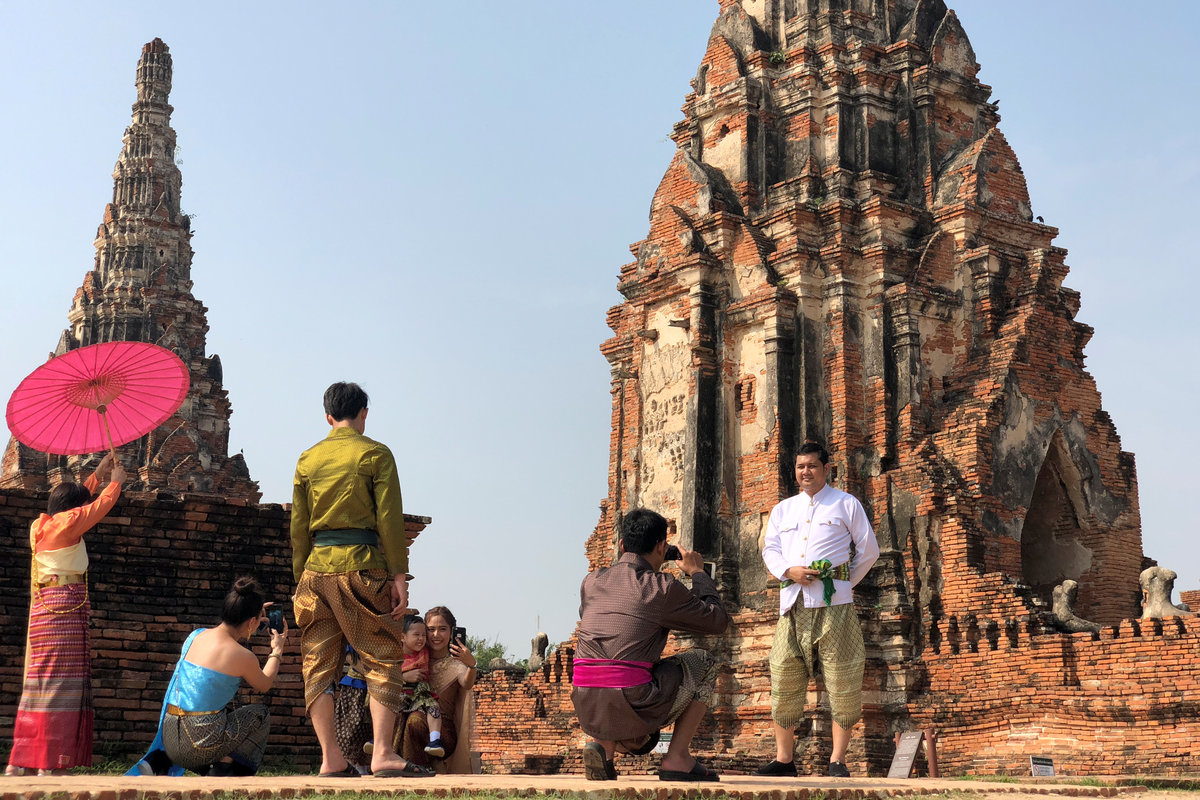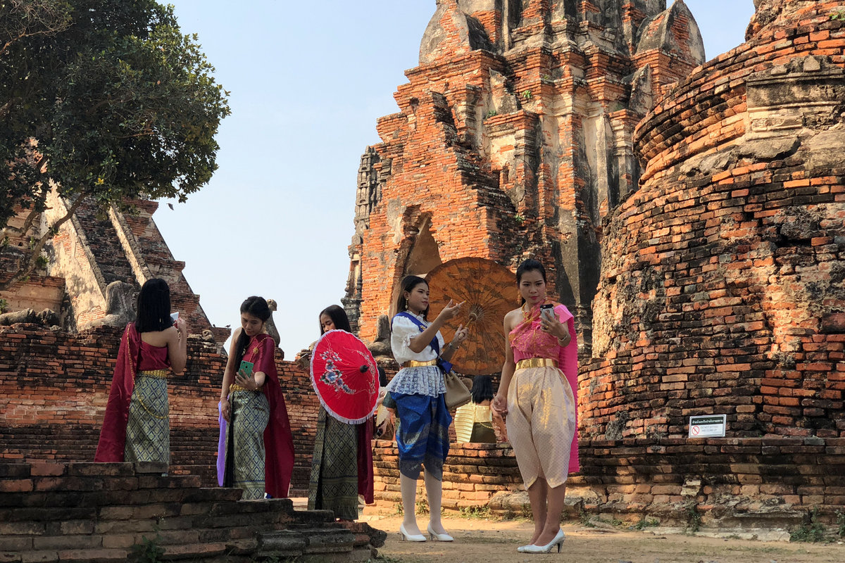 Many Thais are visiting the ancient capital of Ayutthaya, north of Bangkok, where scenes from "Love Destiny" take place. They pose for "selfies" dressed in traditional garb against the backdrop of the ruins.