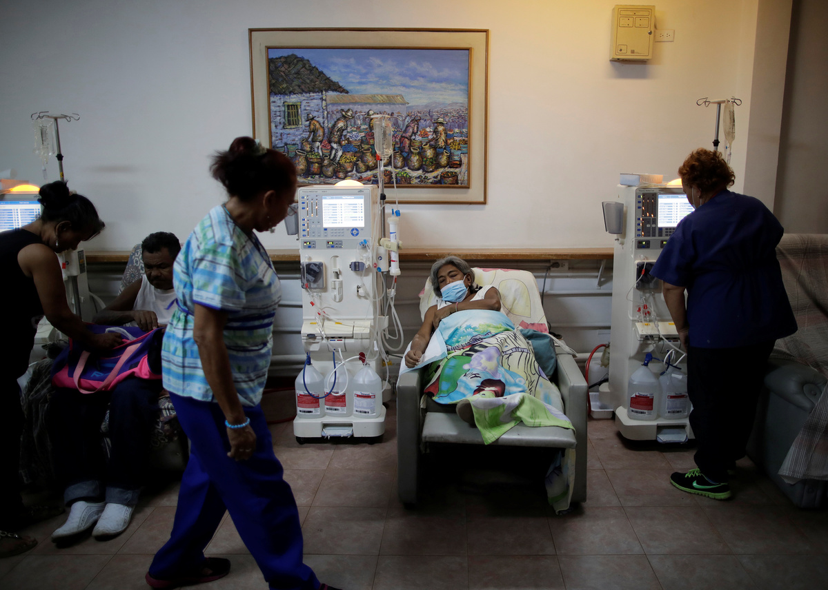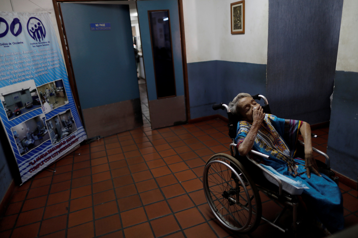 FILE PHOTO: Aidalis Guanipa, 25, a kidney disease patient, stands in her house during a blackout in La Concepcion, Venezuela, April 12, 2019. REUTERS/Ueslei Marcelino FILE PHOTO: Aidalis Guanipa, 25, a kidney disease patient, prepares her breakfast, before a day of dialysis, at her home, during a blackout in La Concepcion, Venezuela, April 29, 2019. REUTERS/Ueslei Marcelino FILE PHOTO: Elimenes Fuenmayor, 65, a kidney disease patient, reacts during a dialysis session, at a dialysis centre in Maracaibo, Venezuela April 11, 2019. REUTERS/Ueslei Marcelino FILE PHOTO: A nurse uses a mobile phone while she waits for the electricity to return in a dialysis centre, during a blackout in Maracaibo, Venezuela, April 11, 2019. REUTERS/Ueslei Marcelino FILE PHOTO: Lino Lopez, husband of Maria Esis, who has kidney disease, uses his car to collect water during a blackout in Maracaibo, Venezuela April 11, 2019. REUTERS/Ueslei Marcelino FILE PHOTO: A nurse waits for the electricity to return, at a dialysis centre, during a blackout in Maracaibo, Venezuela, April 13, 2019. REUTERS/Ueslei Marcelino FILE PHOTO: A Venezuelan police officer orders a man to lift his shirt, during a blackout in Maracaibo, Venezuela, April 12, 2019. REUTERS/Ueslei Marcelino FILE PHOTO: Car's headlights are seen in a neighbourhood during a blackout, in Maracaibo, Venezuela, April 12, 2019. REUTERS/Ueslei Marcelino FILE PHOTO: William Lopez, 45, a patient with kidney disease, waits for the electricity to return, at a dialysis centre, during a blackout in Maracaibo, Venezuela, April 11, 2019. REUTERS/Ueslei Marcelino FILE PHOTO: Maria Esis, 52, a patient with kidney disease, rests during a dialysis session at a dialysis centre, after a blackout, in Maracaibo, Venezuela, April 12, 2019. REUTERS/Ueslei Marcelino FILE PHOTO: A patient with kidney disease waits for a dialysis session, in a dialysis centre after a blackout in Maracaibo, Venezuela, April 12, 2019. REUTERS/Ueslei Marcelino FILE PHOTO: Patients with kidney disease wait with their relatives, for electricity to return, in front of a dialysis centre during a blackout in Maracaibo, Venezuela, April 13, 2019. REUTERS/Ueslei Marcelino FILE PHOTO: A Venezuelan police officer orders a man and his sons to move from the street where he was asking for donations, during a blackout in Maracaibo, Venezuela April 11, 2019. REUTERS/Ueslei Marcelino FILE PHOTO: Maria Esis, 52, a kidney disease patient, uses a telephone in front of her house during a blackout in Maracaibo, Venezuela April 11, 2019. REUTERS/Ueslei Marcelino FILE PHOTO: Maria Esis, 52, a kidney disease patient, sits next to her husband Lino Lopez, as they wait for the electricity to return during a blackout, at their house in Maracaibo, Venezuela April 11, 2019. REUTERS/Ueslei Marcelino FILE PHOTO: Aidalis Guanipa, 25, a kidney disease patient, rests under a tree after a day of dialysis, at her home in La Concepcion, Venezuela April 26, 2019. REUTERS/Ueslei Marcelino FILE PHOTO: Elimenes Fuenmayor, 65, a patient with kidney disease, greets another kidney disease patient, as they wait for the electricity to return during a blackout, in front of a dialysis centre, in Maracaibo, Venezuela April 11, 2019. REUTERS/Ueslei Marcelino FILE PHOTO: Children use mobile phones during a blackout in Maracaibo, Venezuela April 12, 2019. REUTERS/Ueslei Marcelino FILE PHOTO: Patients with kidney disease wait with their relatives for a dialysis session at a dialysis centre after a blackout in Maracaibo, Venezuela April 13, 2019. REUTERS/Ueslei MarcelinoFILE PHOTO: Elimenes Fuenmayor, 65, a patient with kidney disease, waits for the electricity to return, as his grandson lays beside him on the floor, in his house during a blackout in Maracaibo, Venezuela April 11, 2019. REUTERS/Ueslei Marcelino FILE PHOTO: Elimenes Fuenmayor, 65, who has kidney disease, is helped by his sons, as he leaves his house to go to the dialysis centre, during a blackout in Maracaibo, Venezuela April 11, 2019. REUTERS/Ueslei Marcelino