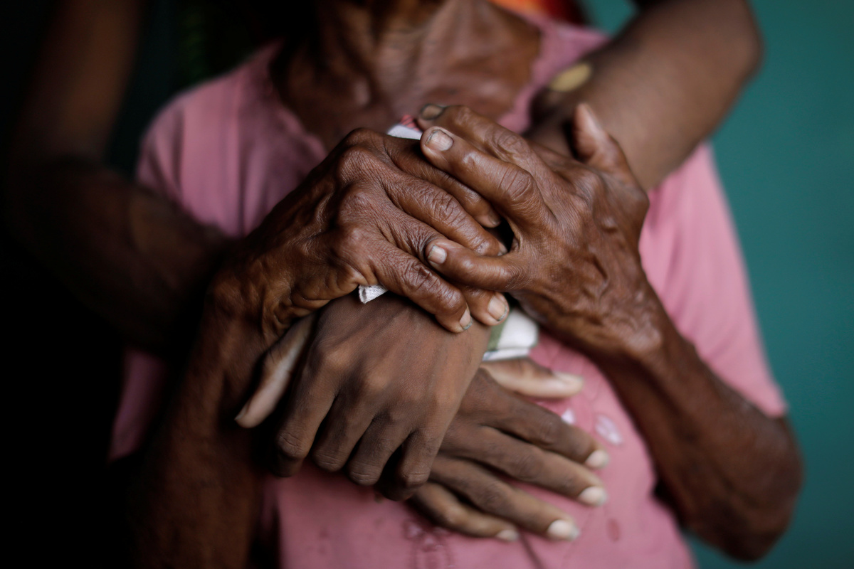 FILE PHOTO: The hands of Aidalis Guanipa, 25, a kidney disease patient, and her 83-year-old grandmother, are seen as they pose for a photo, while they wait for the electricity to return, at her house during a blackout, in La Concepcion, Venezuela, April 12, 2019. REUTERS/Ueslei Marcelino