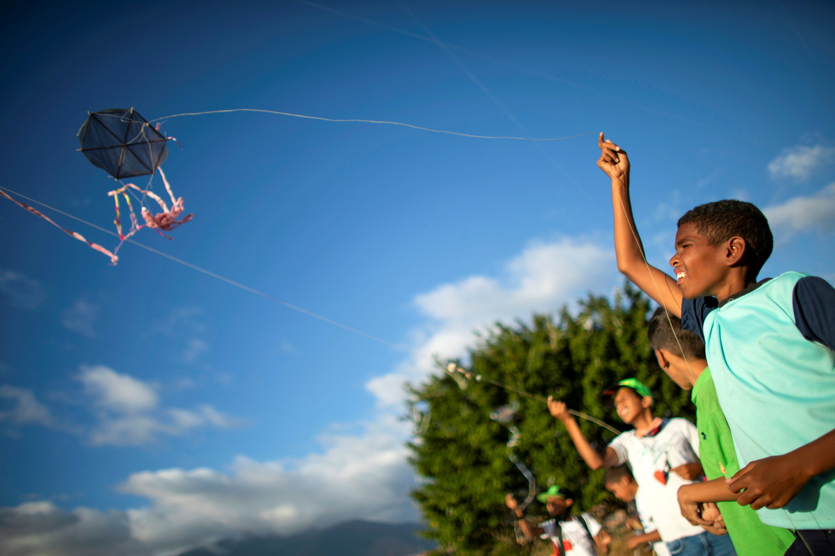 Children and adolescents spent hours flying kites from a hilltop with majestic views of Caracas as a singers performed and a symphonic orchestra of youth musicians played in the background.