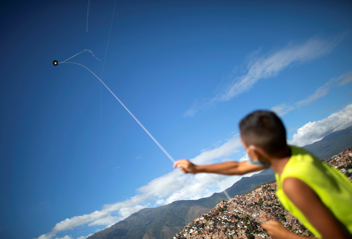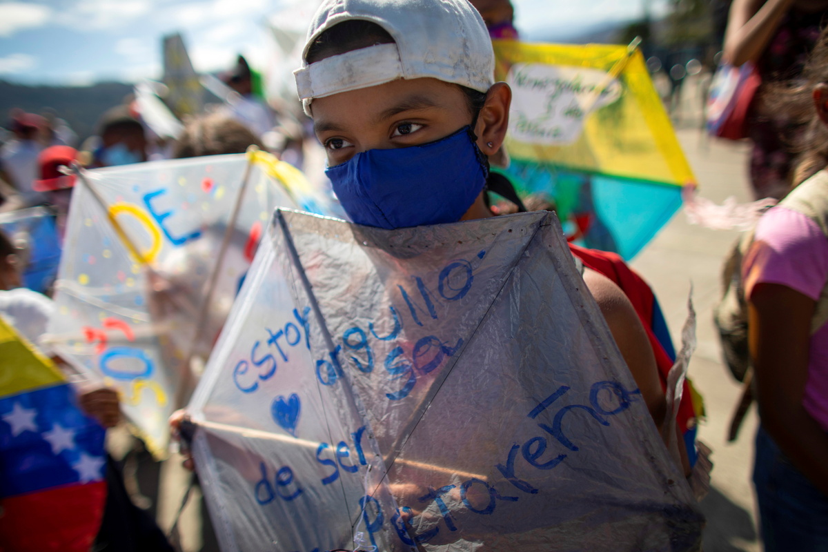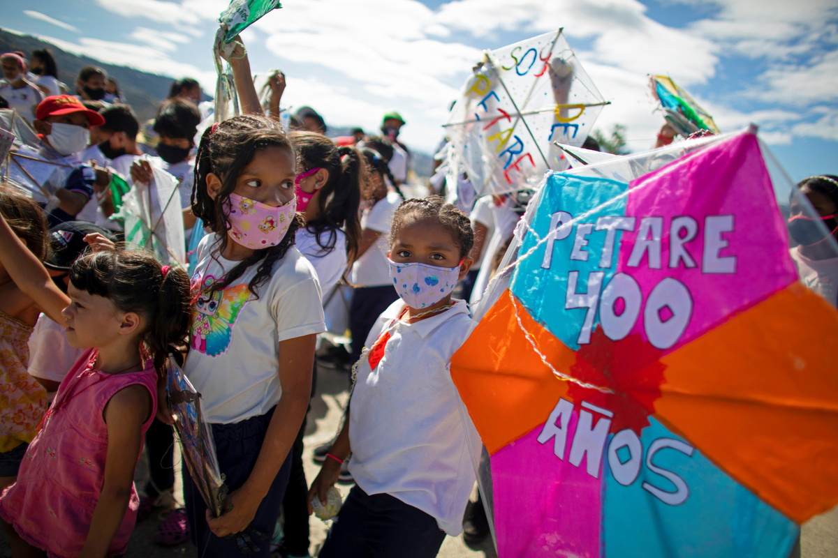 In Venezuela's sprawling impoverished Petare neighborhood on the east end of Caracas, dozens of children and residents flew kites to celebrate the 400th anniversary of the founding of what was once a small village outside the capital.