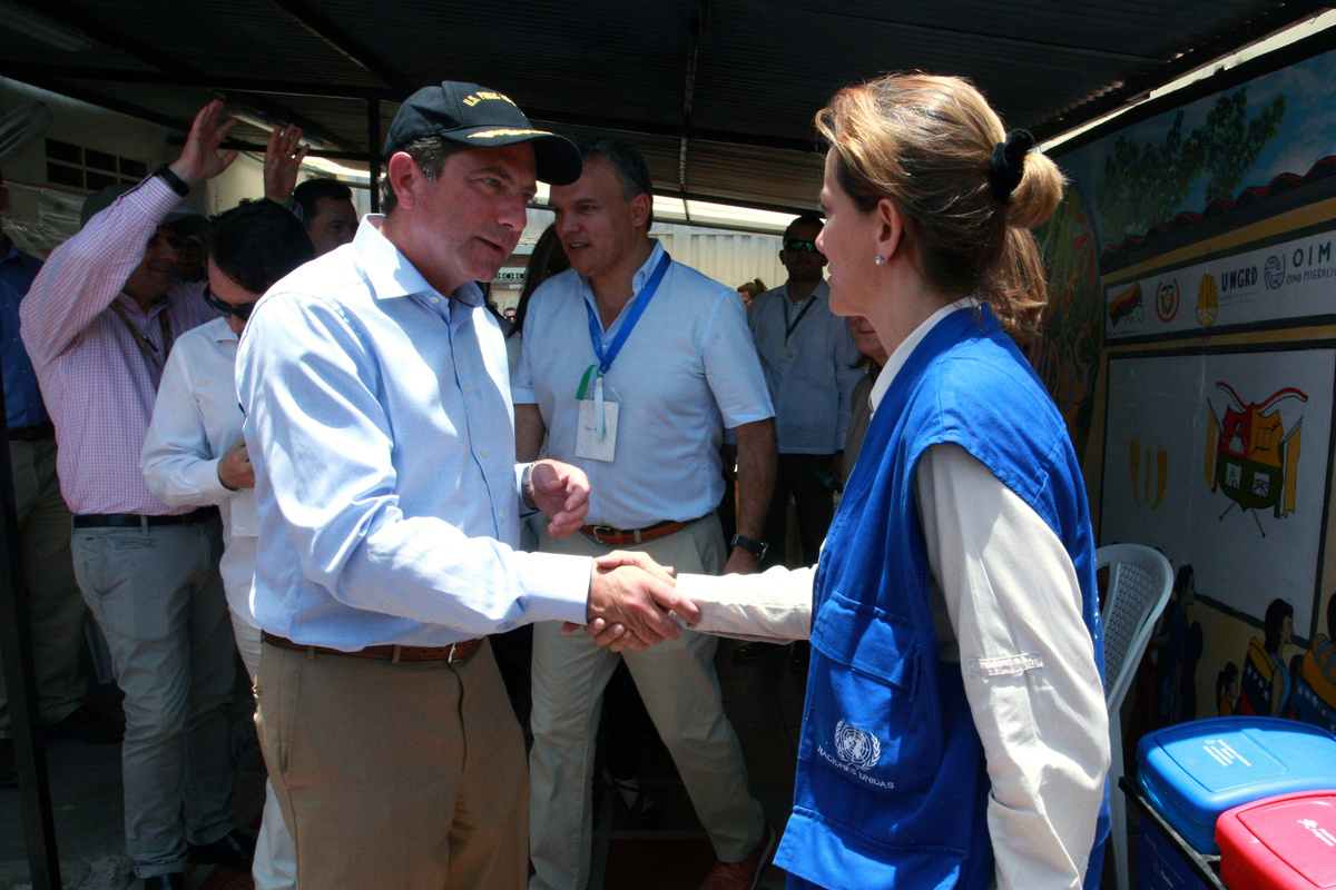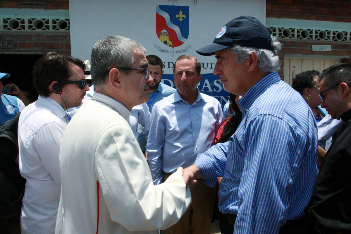 The officials visited a Cucuta hospital where more than 70% of births are to Venezuelan mothers, one of the bridges that marks the border between Colombia and Venezuela, and a migrant cafeteria run by the Catholic Church.