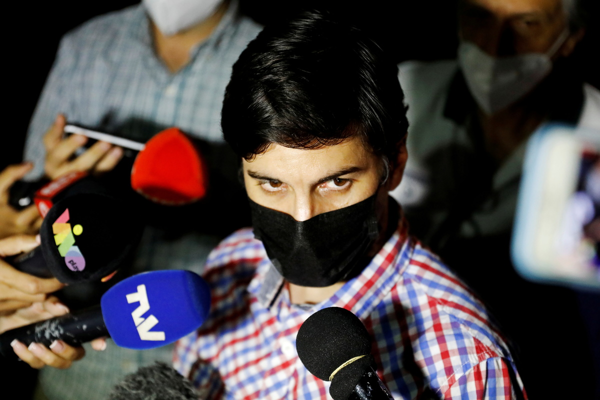 FILE PHOTO: Venezuelan opposition leader Freddy Guevara speaks to the media after leaving "El Helicoide", a detention centre of the Bolivarian National Intelligence Service (SEBIN), where he had been imprisoned after he was charged with terrorism, treason, and an attack on constitutional order, in Caracas, Venezuela August 15, 2021. REUTERS/Leonardo Fernandez Viloria