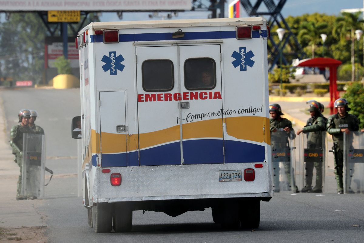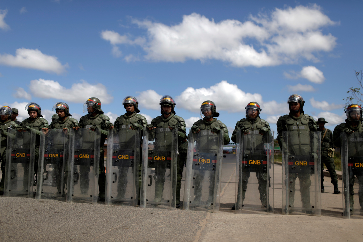 KUMARAKAPAY, Venezuela/CUCUTA, Colombia (Reuters) - Venezuelan soldiers opened fire on indigenous people near the border with Brazil on Friday, killing two, as President Nicolas Maduro sought to block U.S.-backed efforts to bring aid into his economically devastated nation.