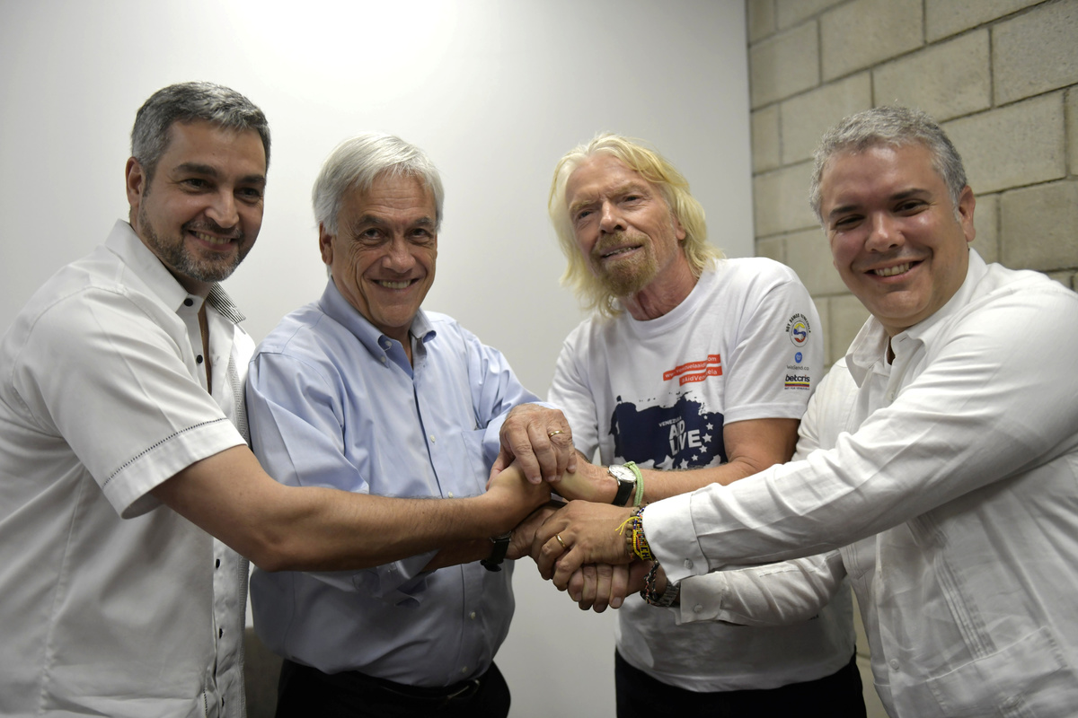 Earlier in the day, Branson held a news conference near a never-used border bridge that Venezuelan authorities have blocked with shipping containers.