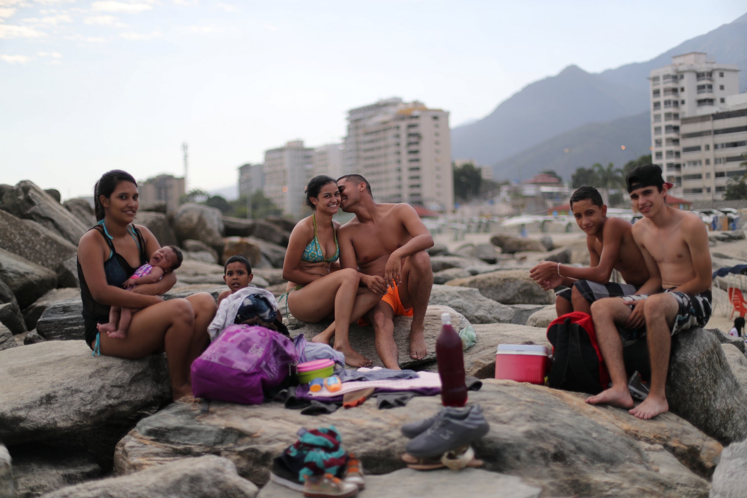 “You put your mind in another place,” says Leonel Martinez, a 26-year-old soldier, while relaxing on the sand with his girlfriend as her nephews play nearby. “It’s a way to think about something besides what is happening in the country.”