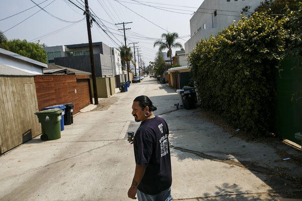 Mike Bravo has lived in Venice's Oakwood neighborhood, historically home to a large black and Latino population, for most of his life. Walking past the local park, he points to a new cube-shaped apartment wedged against an older stucco home. Locals call the gray building the mini Nordstrom, he said, because it's a symbol of the upscale changes here.
