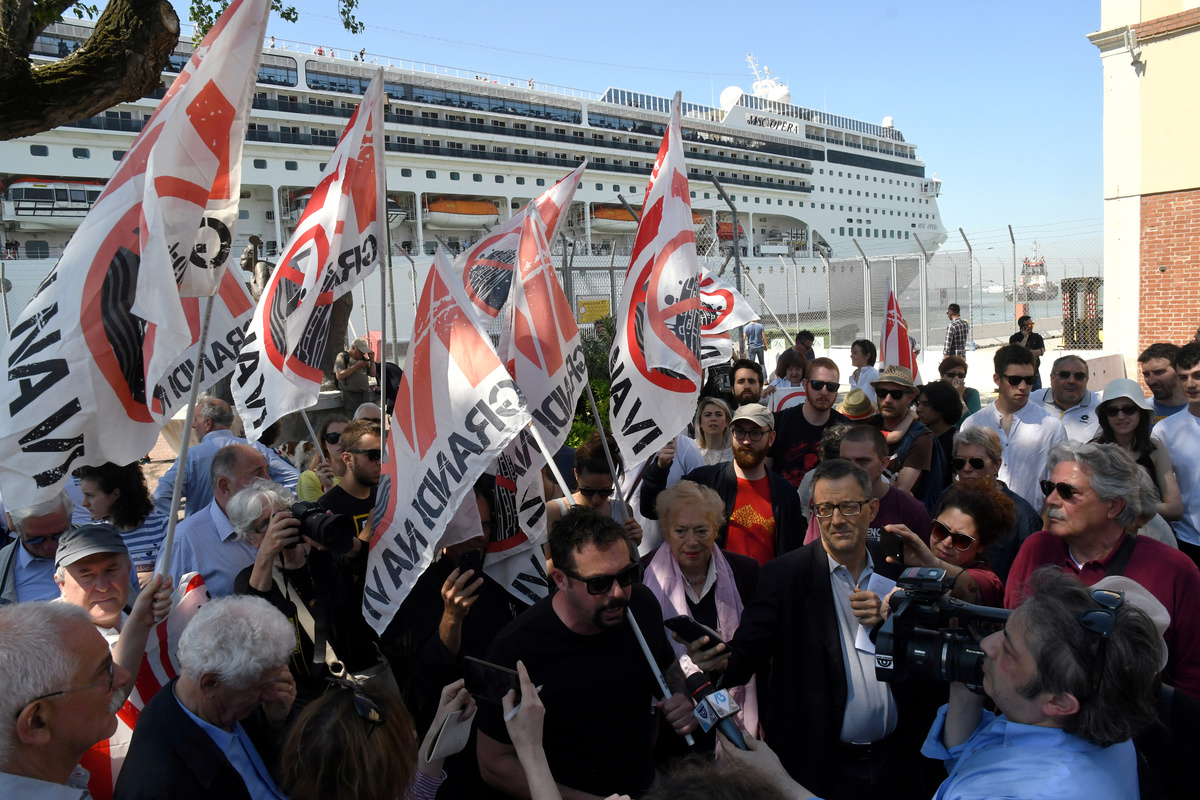 Italia Nostra says they cause waves that damage historic buildings. The group wants a port for big ships built at one of the mouths where the Adriatic meets the lagoon.