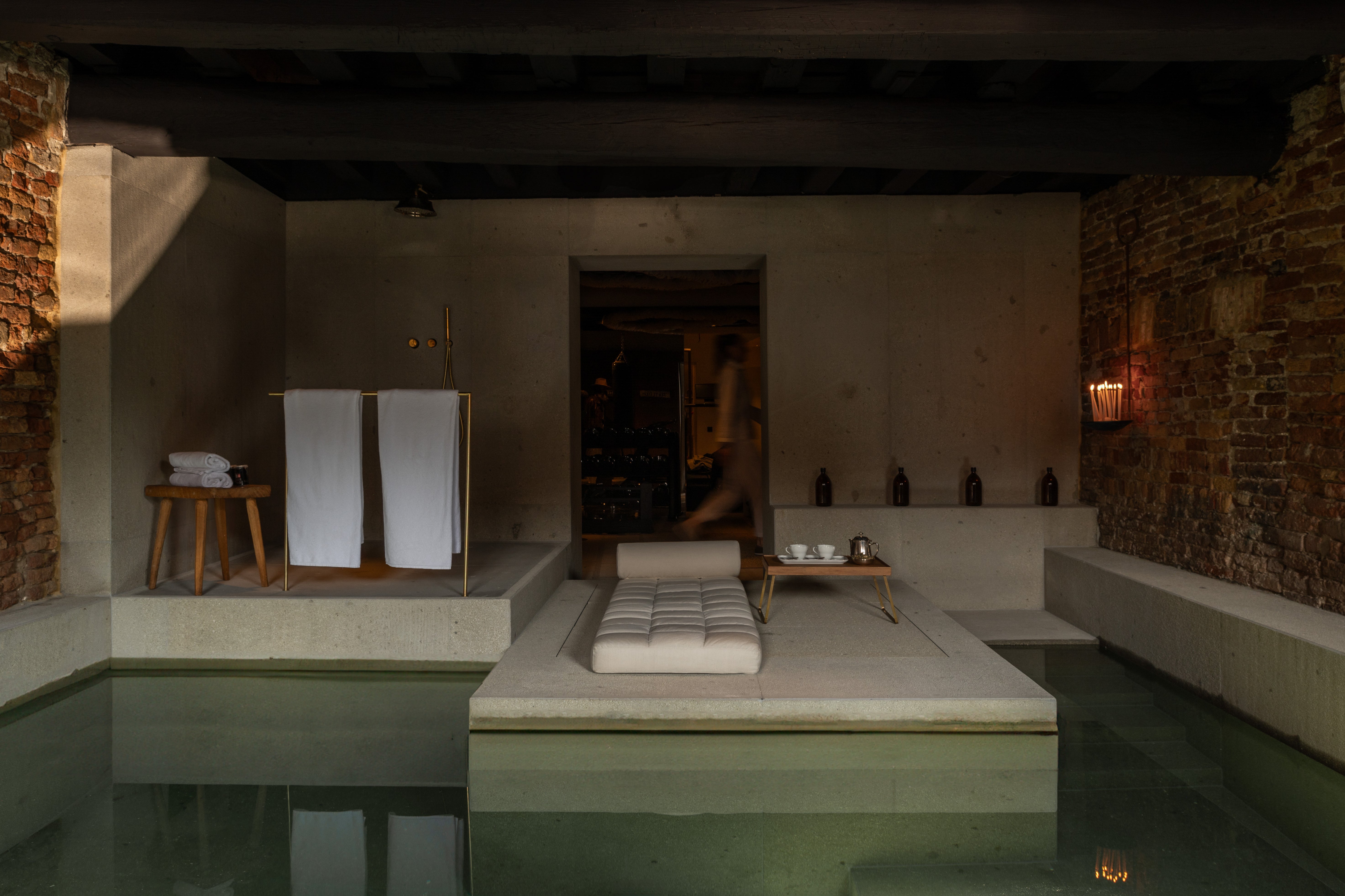 Venice Venice houses 43 rooms, including suites, family lofts and a sprawling ground-floor apartment with its own boat pontoon and two marble bathtubs. Some boast magnificent views over the Grand Canal and Rialto, while others have internal courtyard views. Bathrooms feature cipollino marble walls that resemble the surface of Jupiter, with double-showers, standing bathtubs, dual rainfall showers – and even personal steam rooms – in some suites. Complimentary pull-top cans contain Venice Venice’s own Erose brand of shampoo, conditioner and shower gel. There’s an extensive drinks trolley complete with grappa, rum, mezcal and biscotti and, bizarrely, a Yeti Tundra cooler that doubles as a luggage rack. Bespoke playlists pipe tasteful music throughout the neutral coloured rooms, which include exposed brick and cream walls and more exquisite contemporary art pieces. The natural fibre carpet is a misstep; without the complimentary slippers, it can be painful to walk upon.