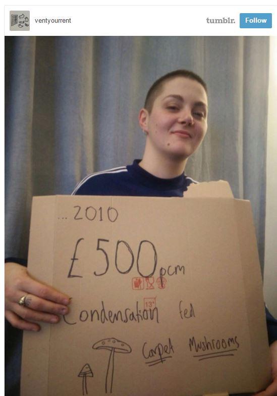 A female tenant who pays £500 per month for rent said condensation led to carpet mushrooms.
